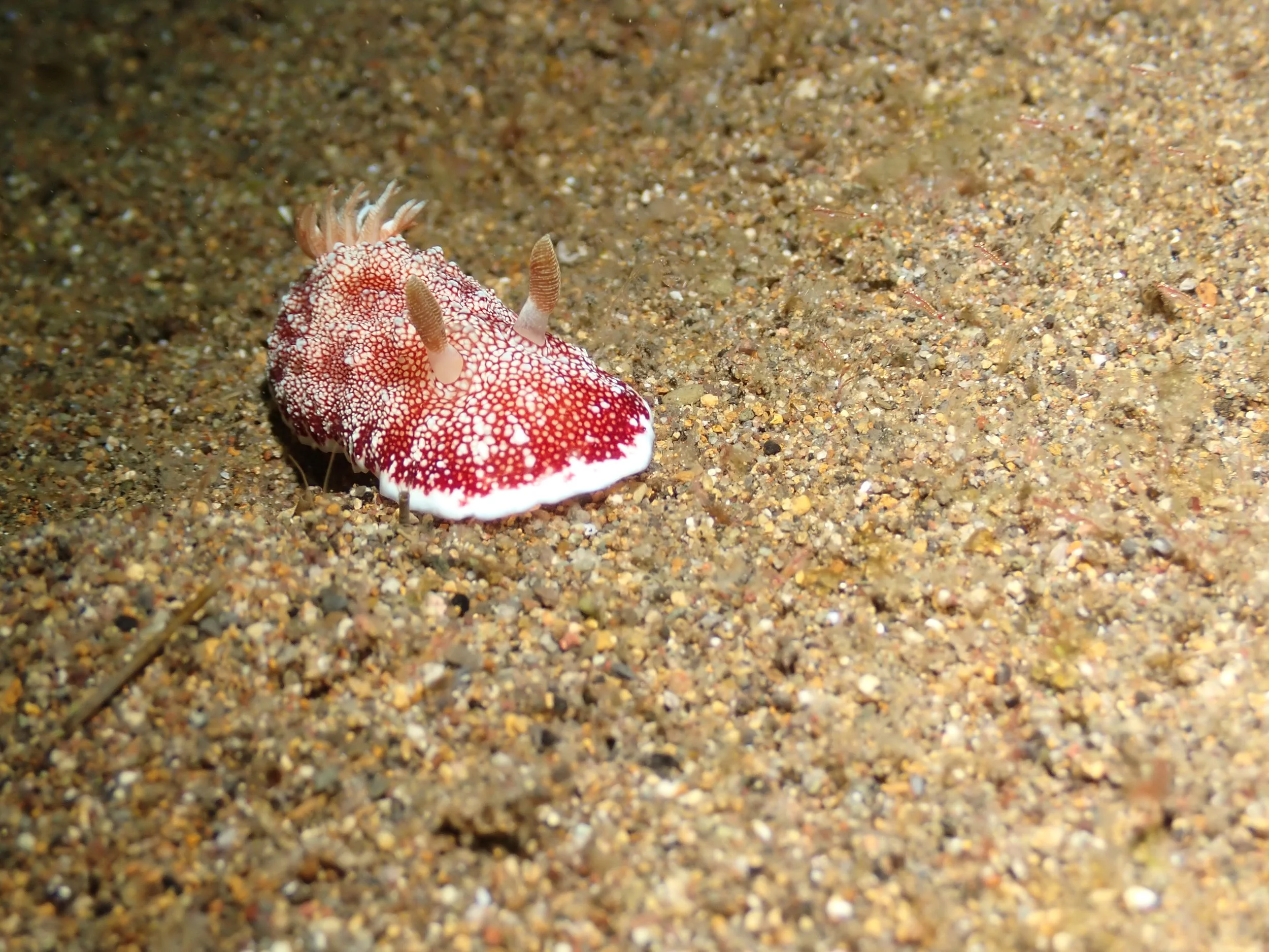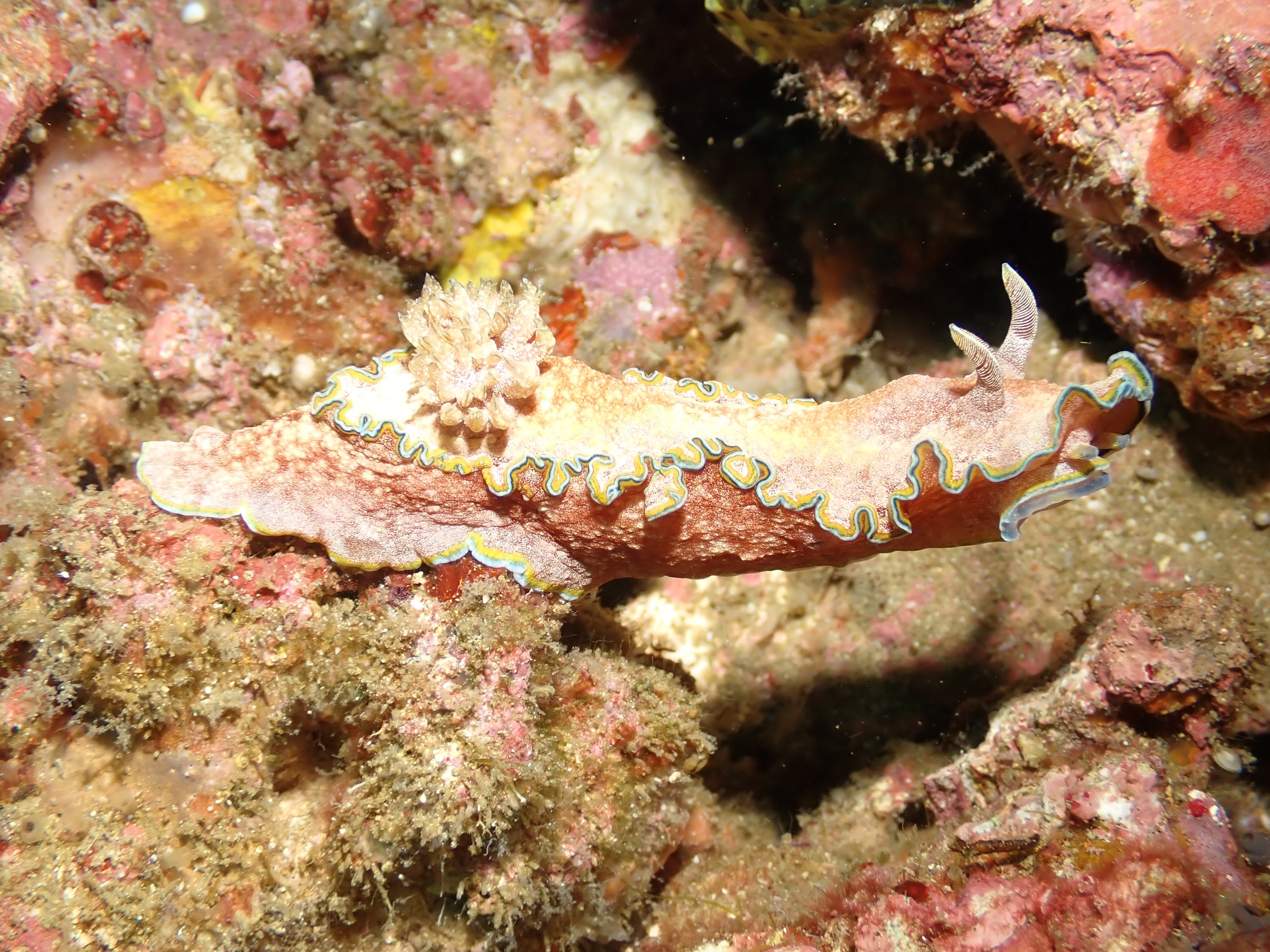 Most nudis were in the 1-2 inch range (although our guides delighted in pointing out ones as small as 1/4 inch, and I could only see them when I put my photos on my computer and blew them up). I enjoyed getting down on the nudi’s level to take their picture -