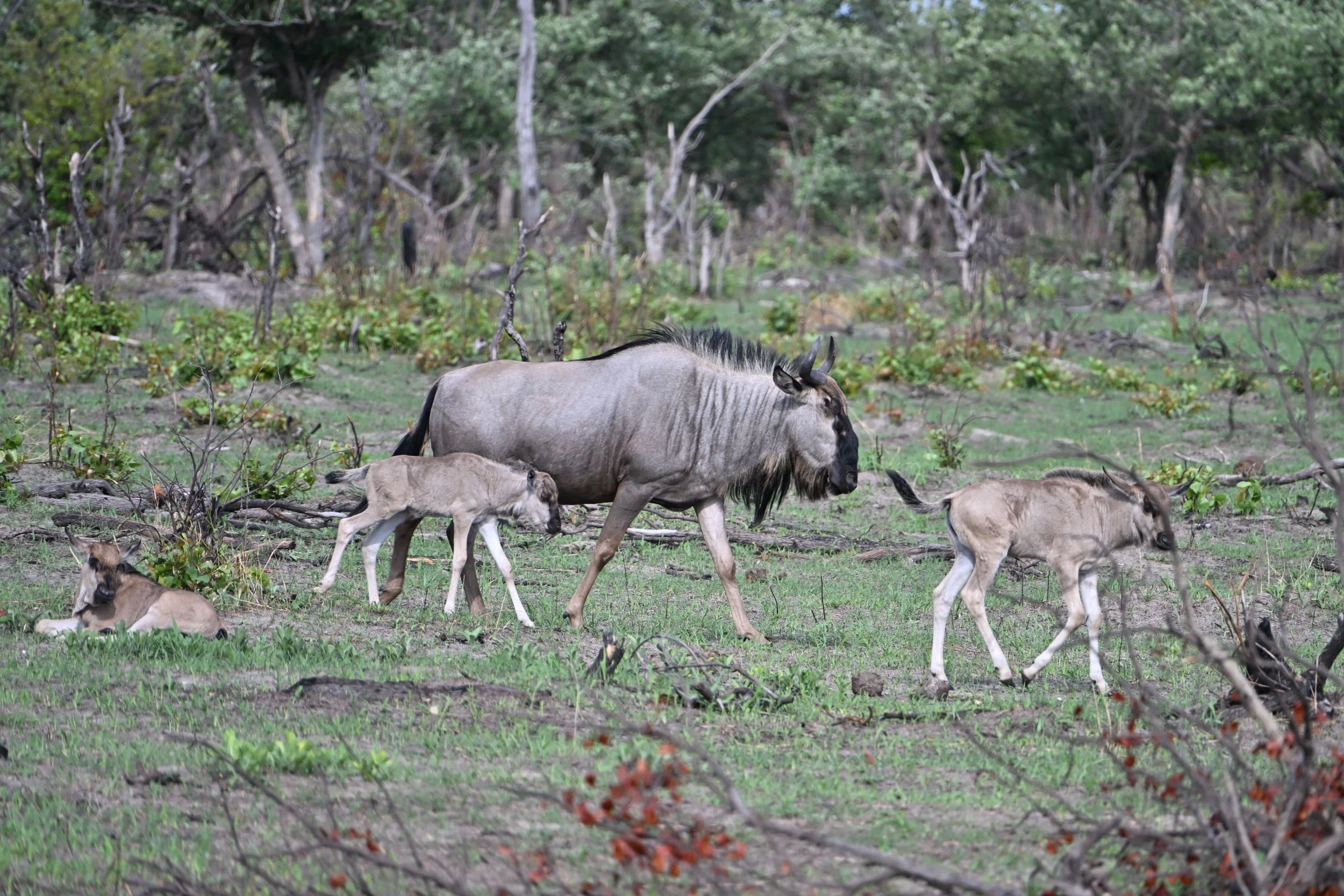 Wildebeest, Tsessebe (with babies) and Zebra