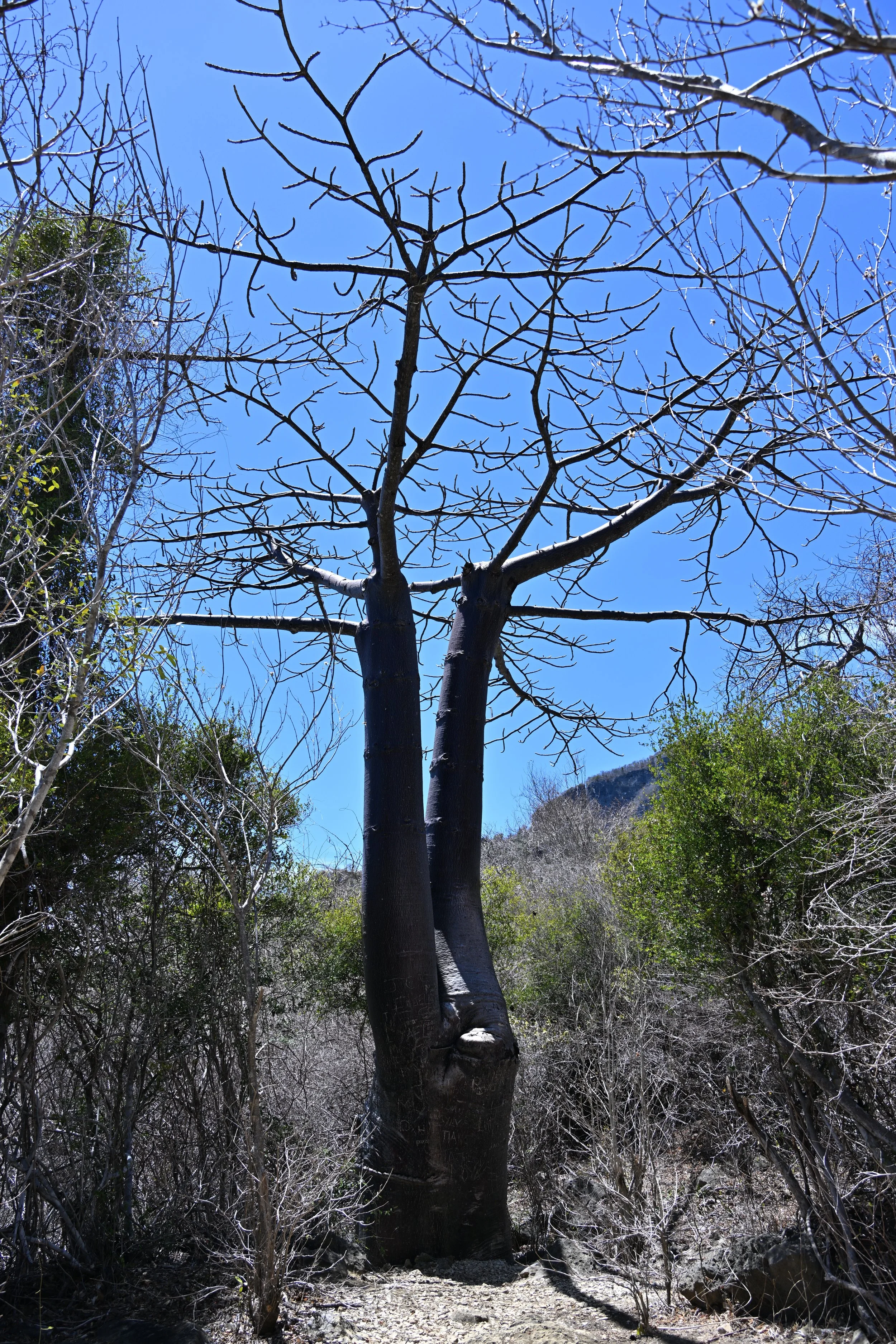 Of course, those roads also posed issues to trucks. This truck, which we walked by when looking for chameleons, ended up a few feet from a 100+ ft dropoff, and apparently had been waiting a week for a tow truck (or trucks) sufficient to haul it back out:
