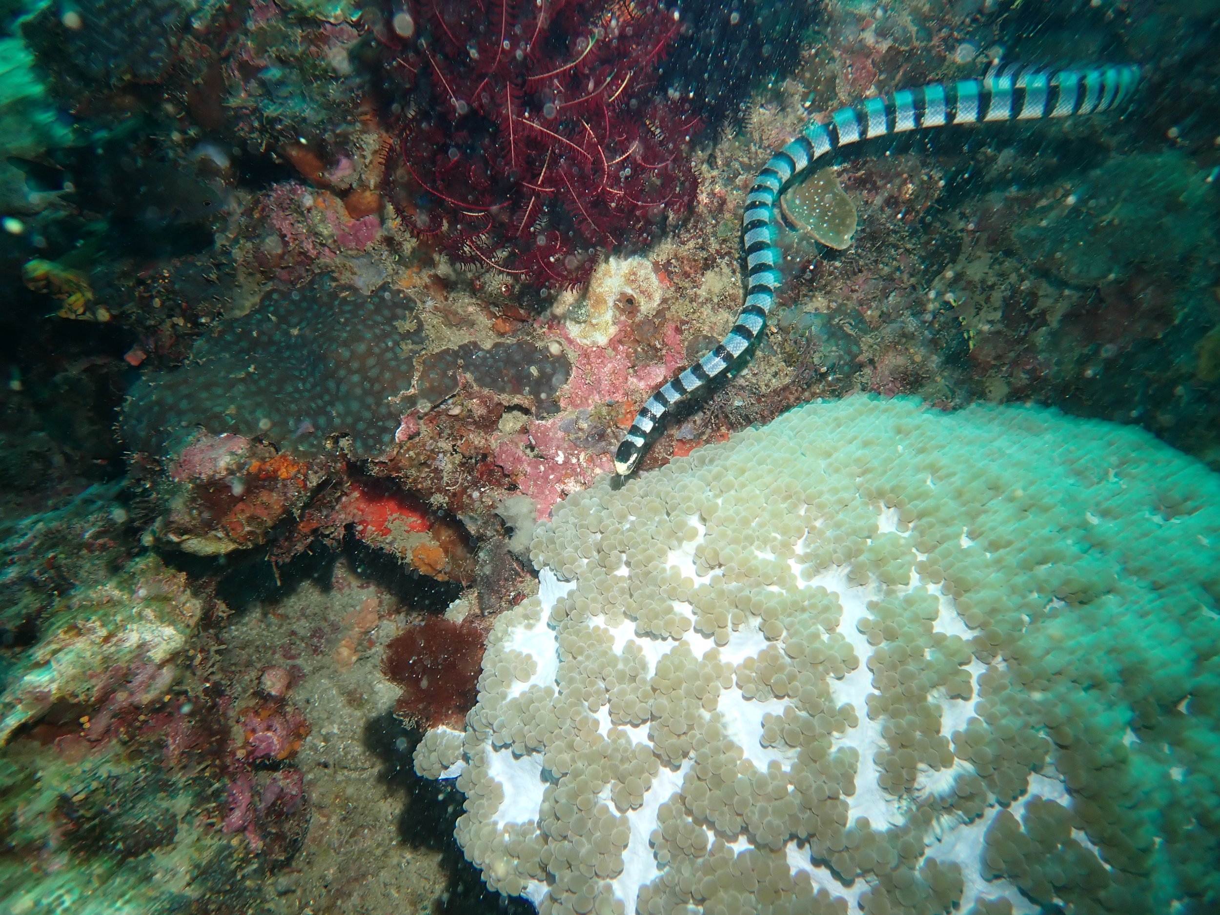 The next one isn’t the greatest picture, but this Banded Sea Snake is a very unusual sighting for us -