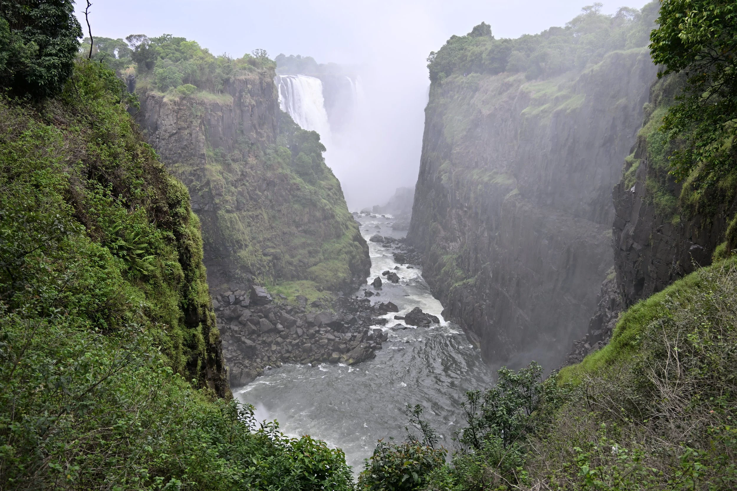 This first viewpoint was at the end of the canyon that contains the falls, and the overcast and mist created a gloomy atmosphere.