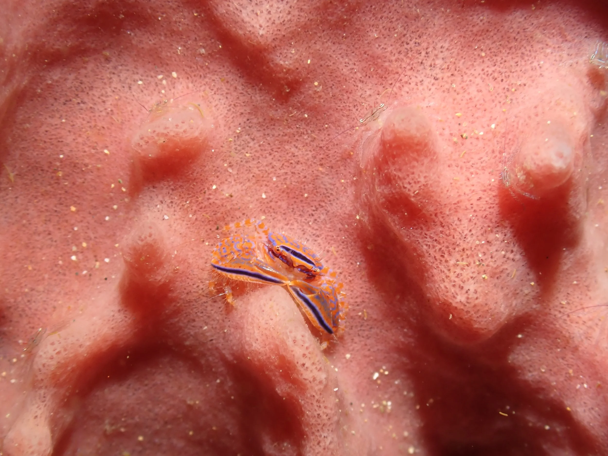 Here’s another tiny beauty - a Spotted Crab on the outside of a barrel sponge: