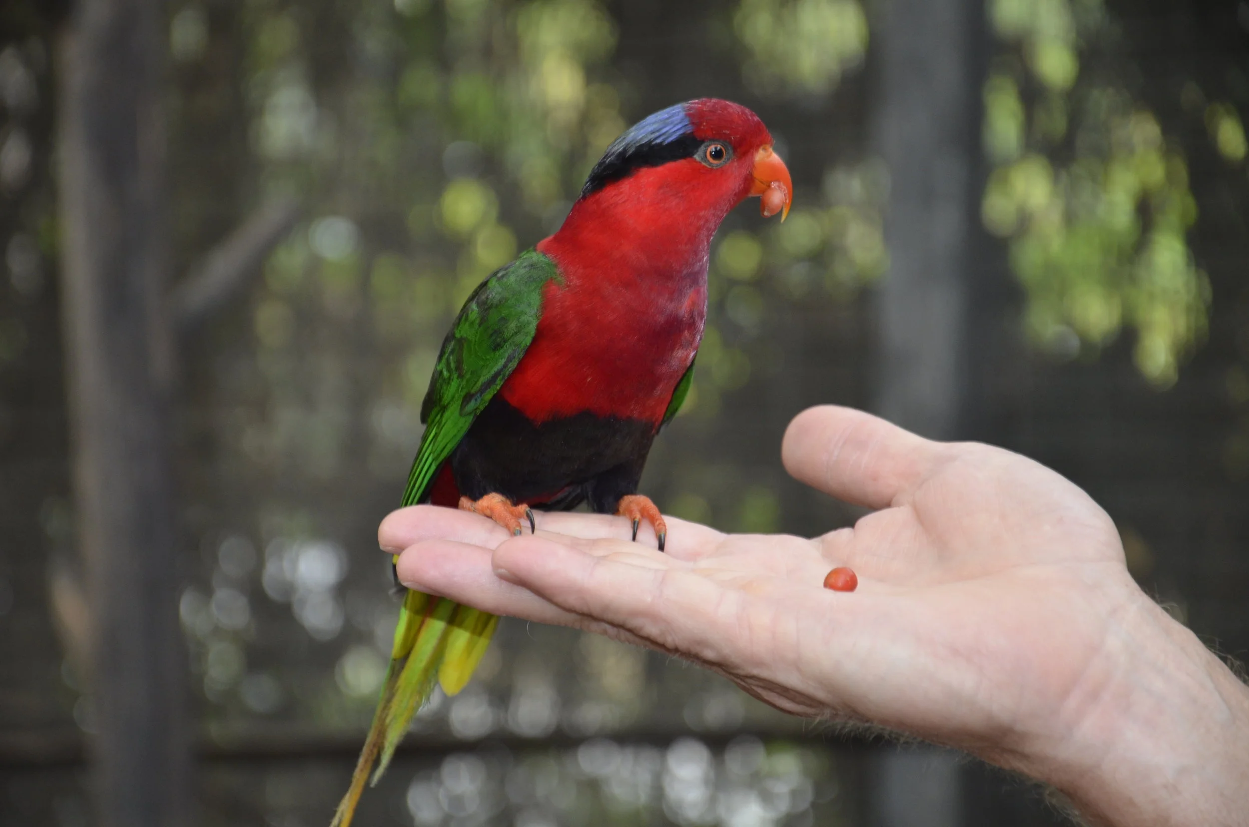 A Papuan Lorakeet on Steve's hand