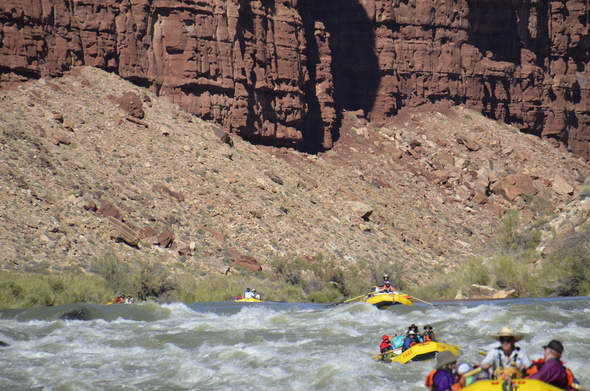 At the introduction meeting in Flagstaff, AZ, our trip leader, Billie, confirmed that everybody had the alcohol that they had ordered ahead of time, and we were confident in the 2 liter plastic bottles of Jameson and aged rum that we brought. It sure seemed like a lot, but if you drink over 100 ml every day, for 15 nights, it adds up… We got comments from the river guides that it was rare to have guests ration their liquor like we did. Anyway, on to the sights -