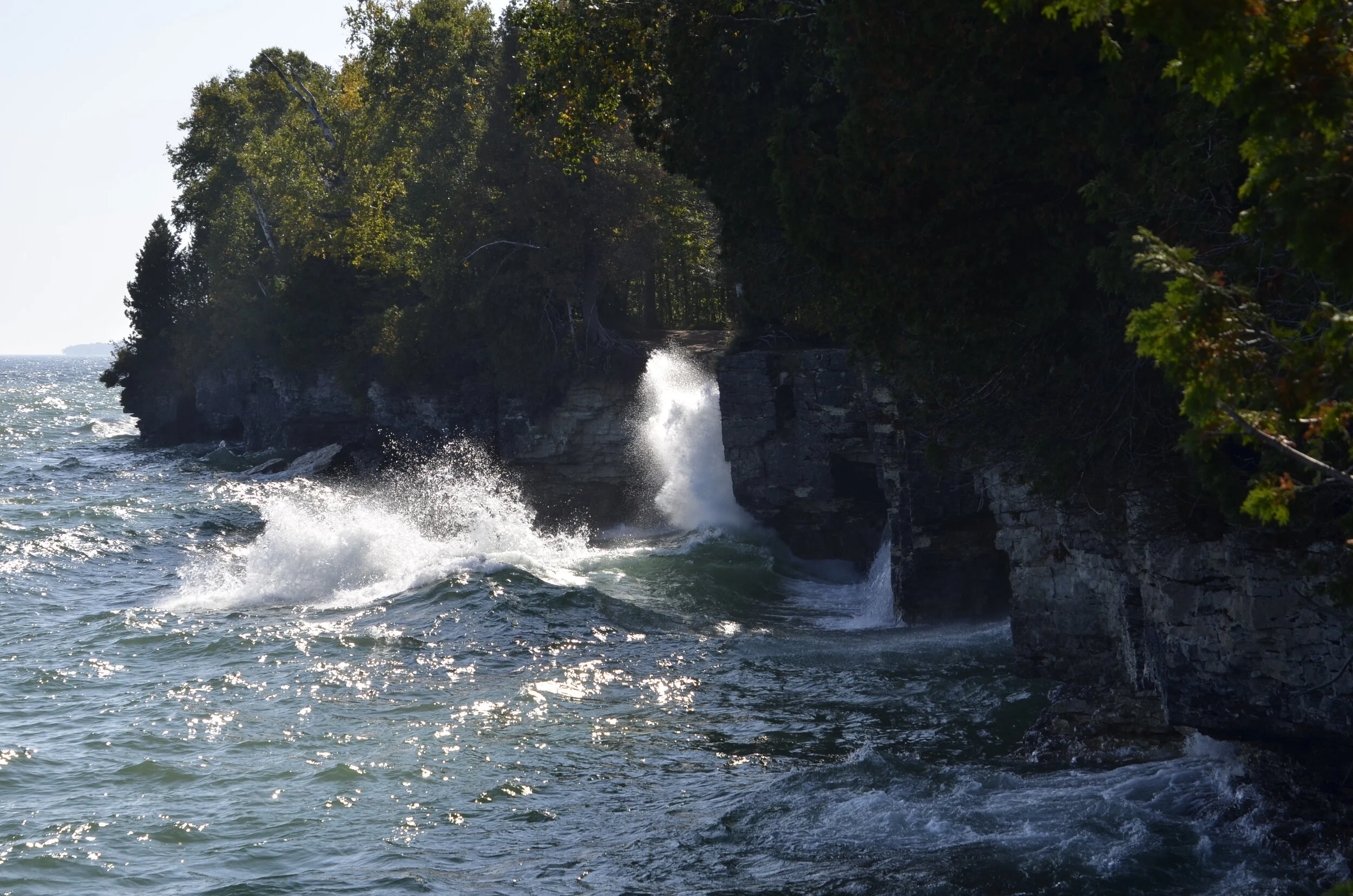 So, we then headed back up into the UP, again trying to visit Pictured Rocks Lakeshore, but were again thwarted by dark skies and impending rain. Soooo…we then headed east on the UP, and visited Tahquqmenon Falls State Park.