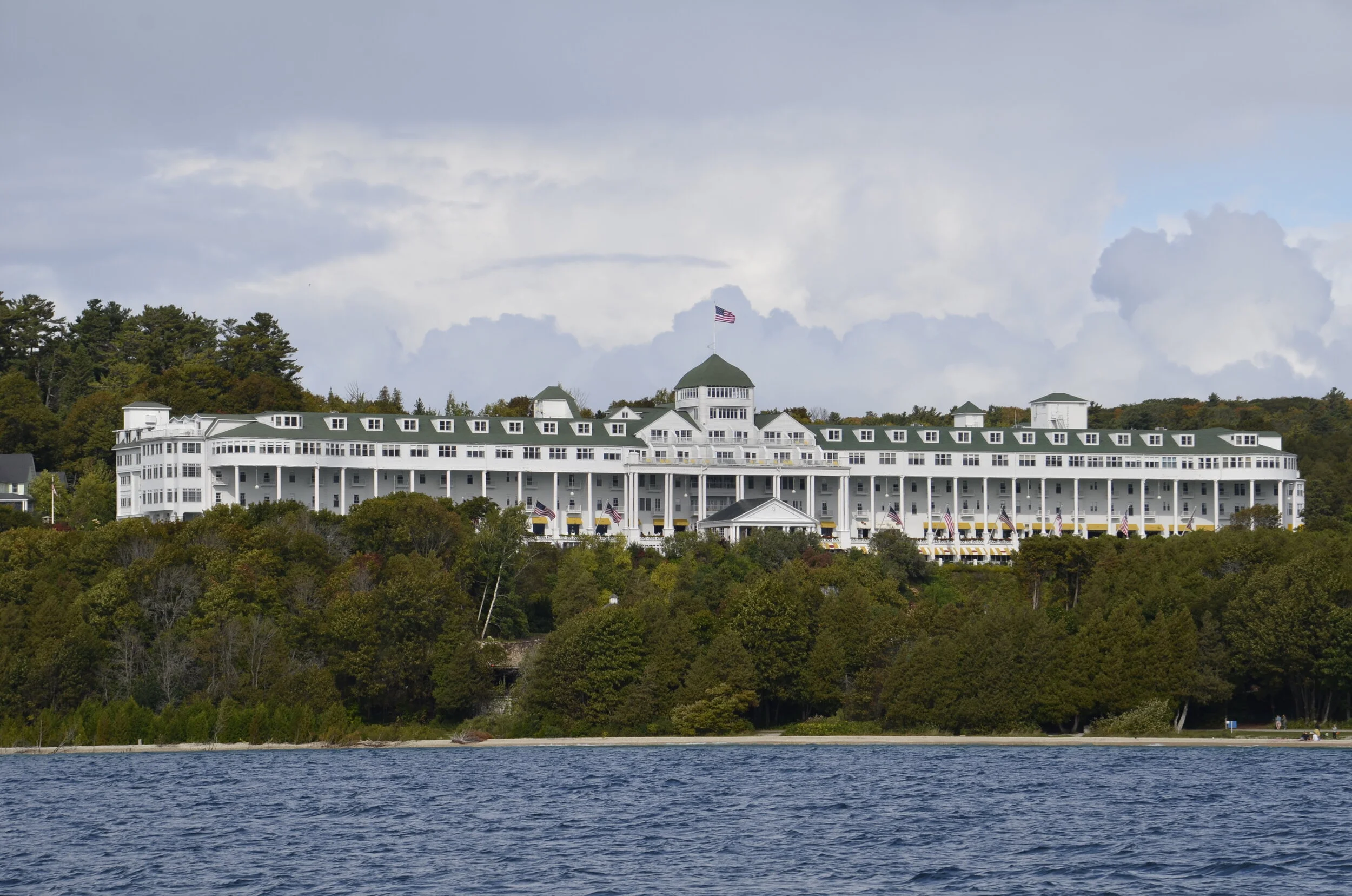 We wanted to go to Pictured Rocks National Lakeshore, but the weather for the next several days was predicted to continue cloudy and mostly rainy. So we headed to Mackinac Island for a couple of days of R&R. On the ferry ride over, we were treated to a magnificent view of the Grand Hotel (“the world’s largest summer hotel”) where we did NOT stay due to the $500+ room charge…