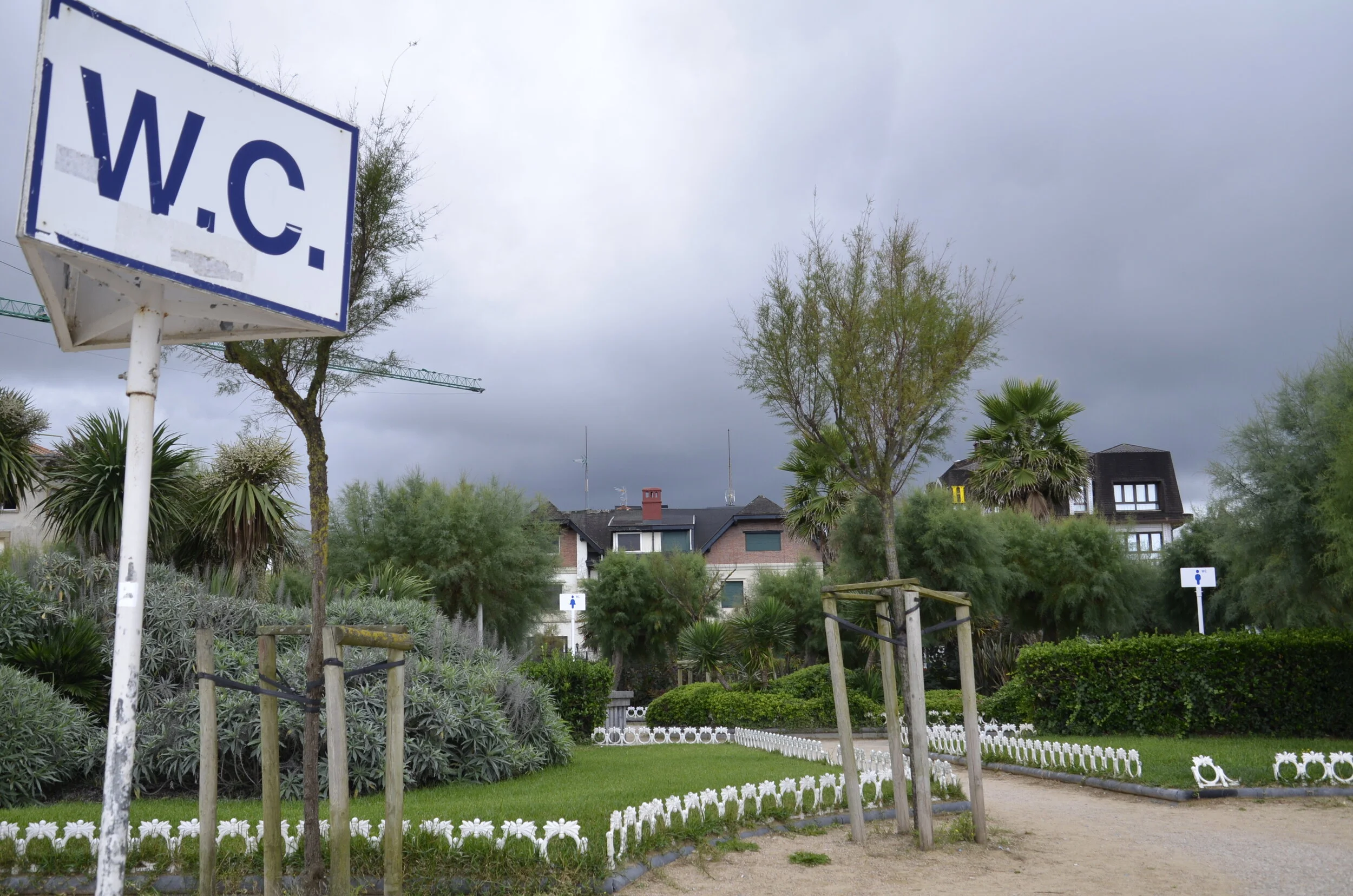 From the paseo, it looked like men and women each had their own bush to crouch behind! Actually the little white signs were positioned at the top of narrow staircases leading down to the restrooms. :)