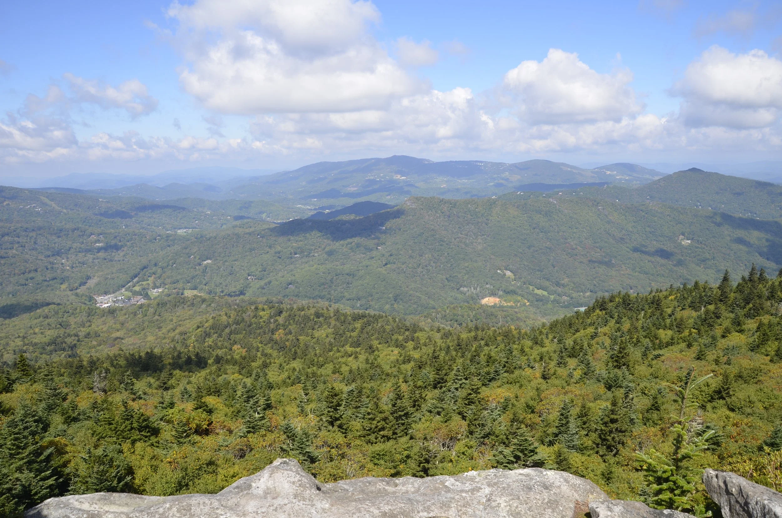 Our first stop was the friendly town of Boone, so we could hike Grandfather Mountain. This is in a state park with several trails as well as a privately owned attraction with a “Mile High Swinging Bridge”. We’ve done enough high swinging bridges in our travels to date, that we took a pass on paying to hike. We hiked just about 8 miles with over 2,200 ft of elevation gained. The name of our trail was “Profile” Trail, and here is the eponymous view: