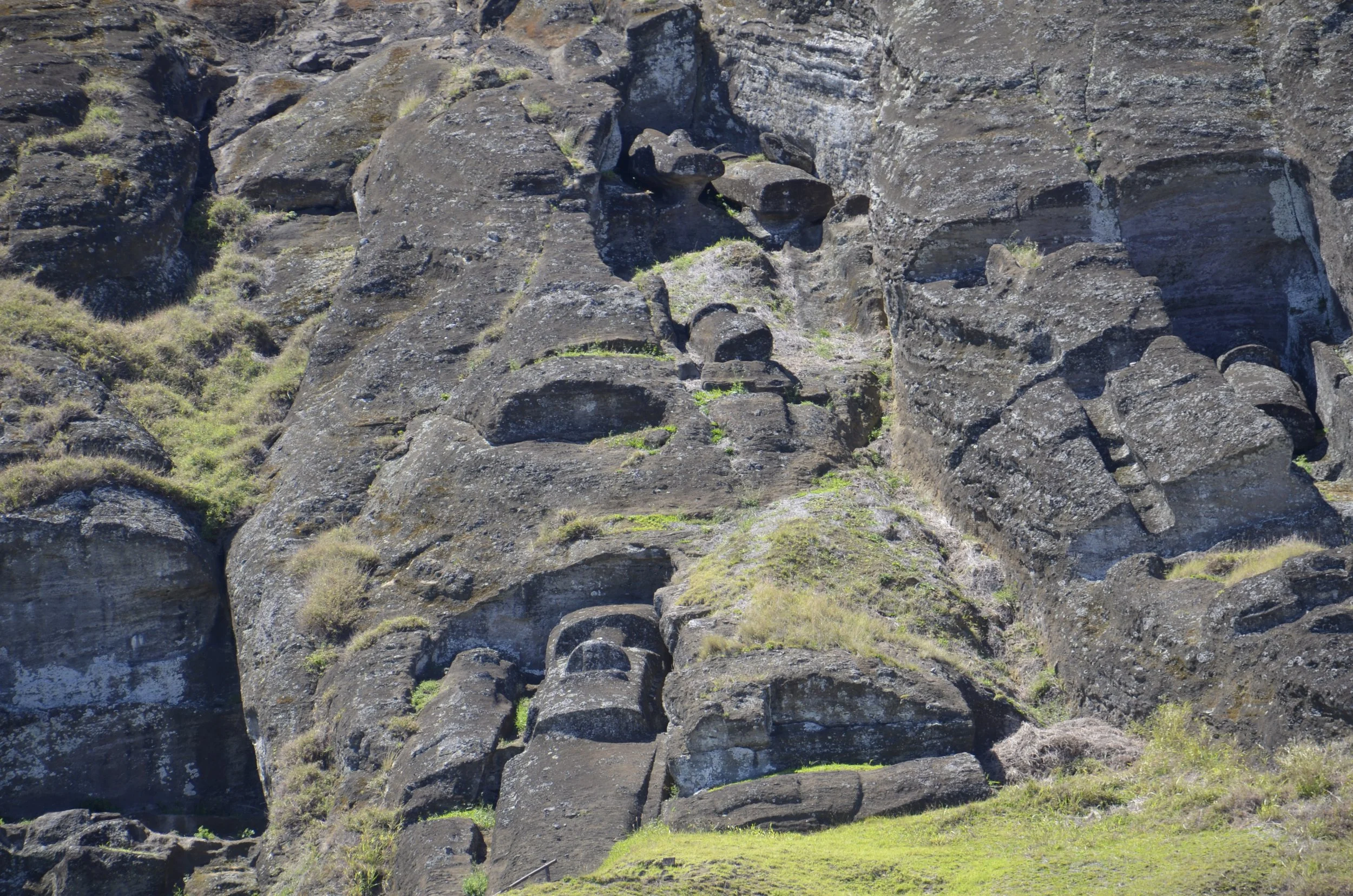 The next picture shows how the moai were carved out of the rock, and in the top part of the picture note the moai looking into the sky is still attached to the rock -