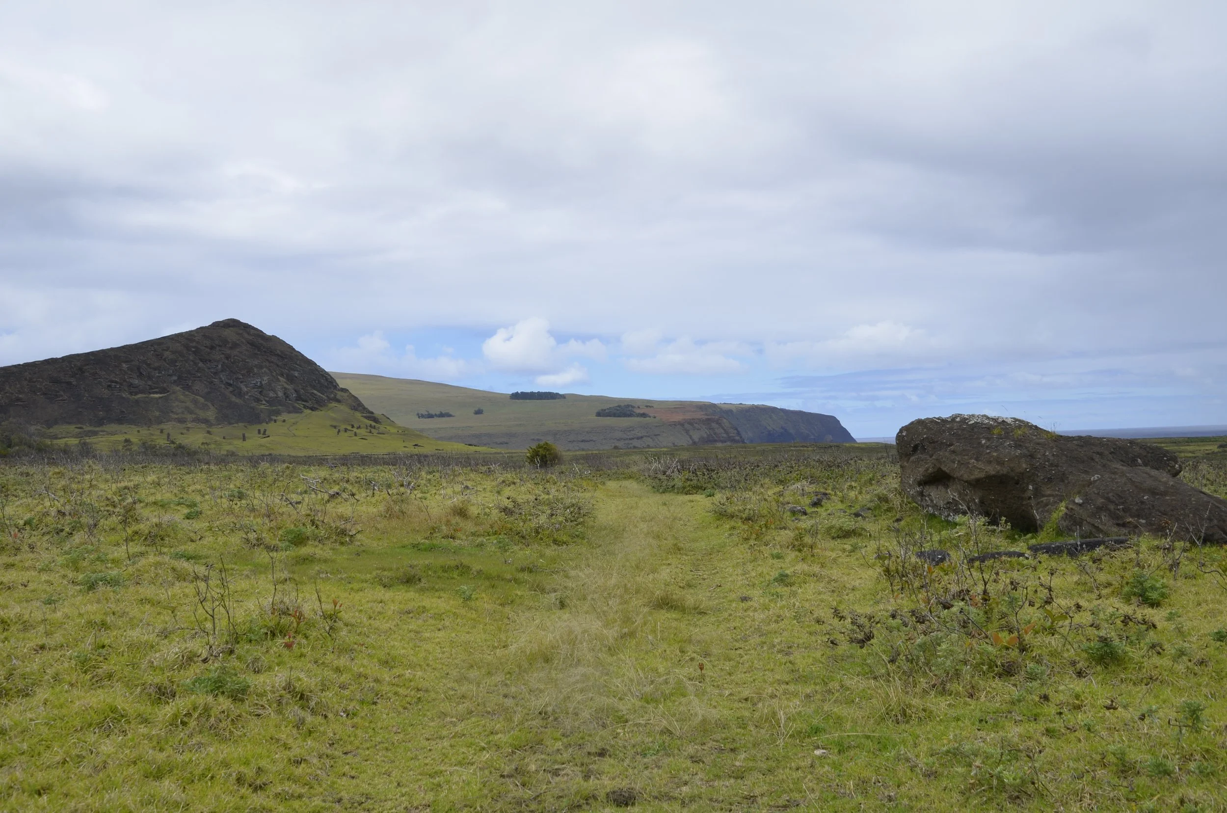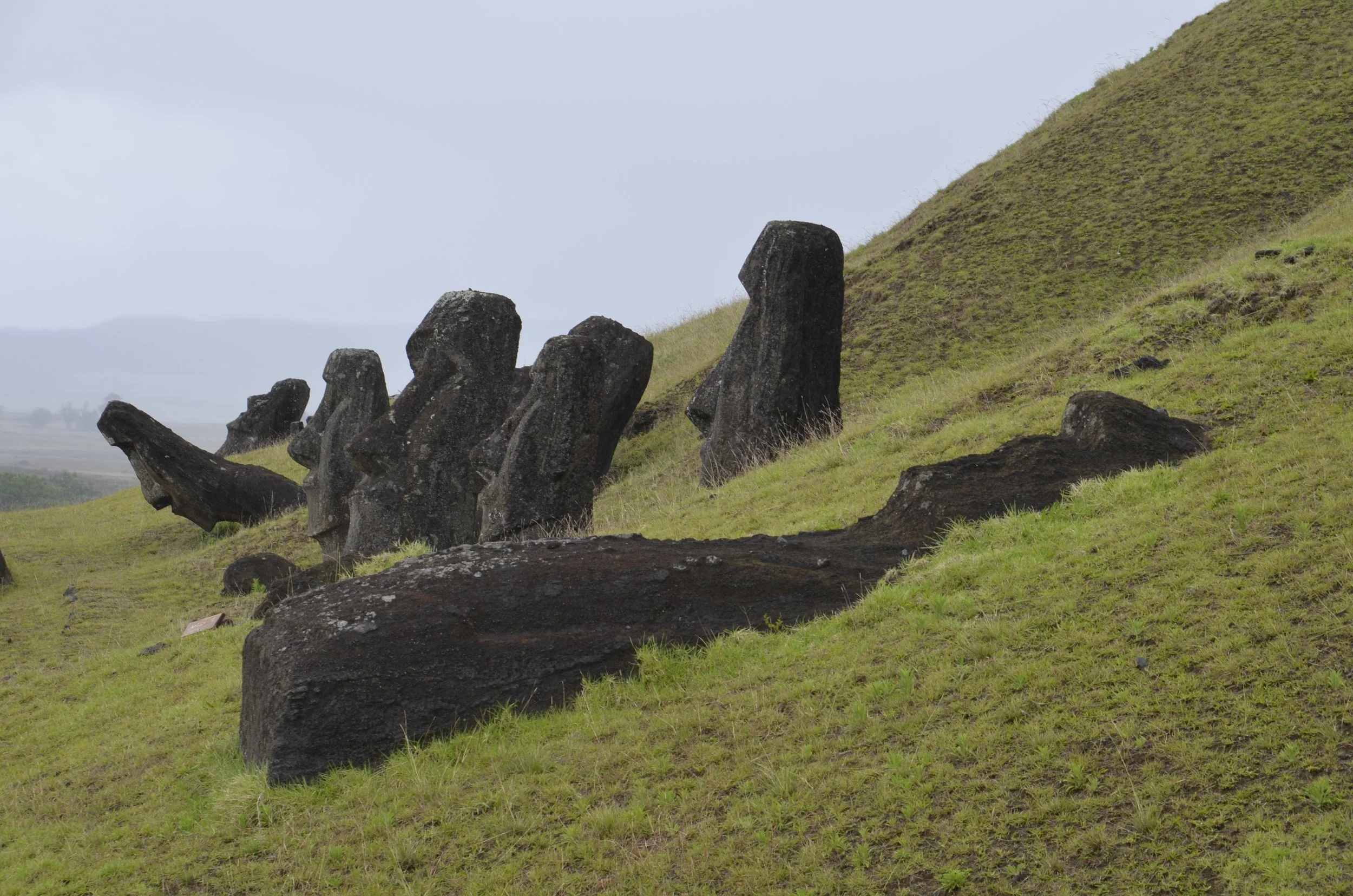 We started at the coast, and as we walked, we passed about a dozen fallen moai -