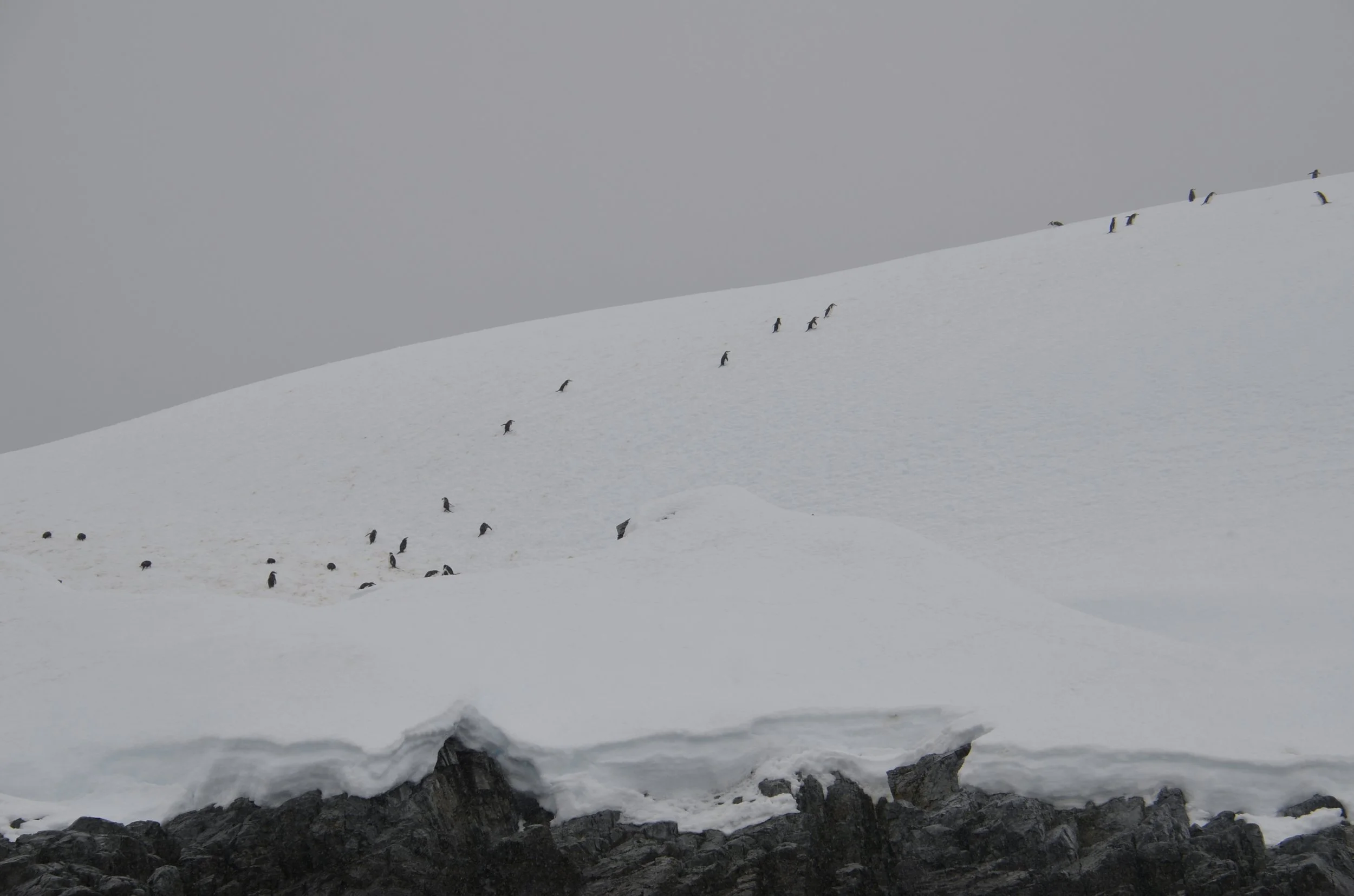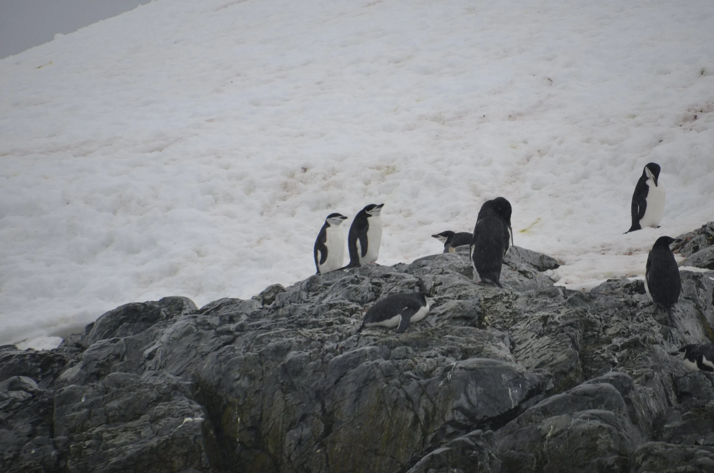 By the time of our Zodiac expedition, it was raining, sleeting and snowing. I wasn’t super thrilled to be sitting on a rubber boat for an hour or more in that, but I/we soldiered on and saw our first colony of Chinstrap Penguins –