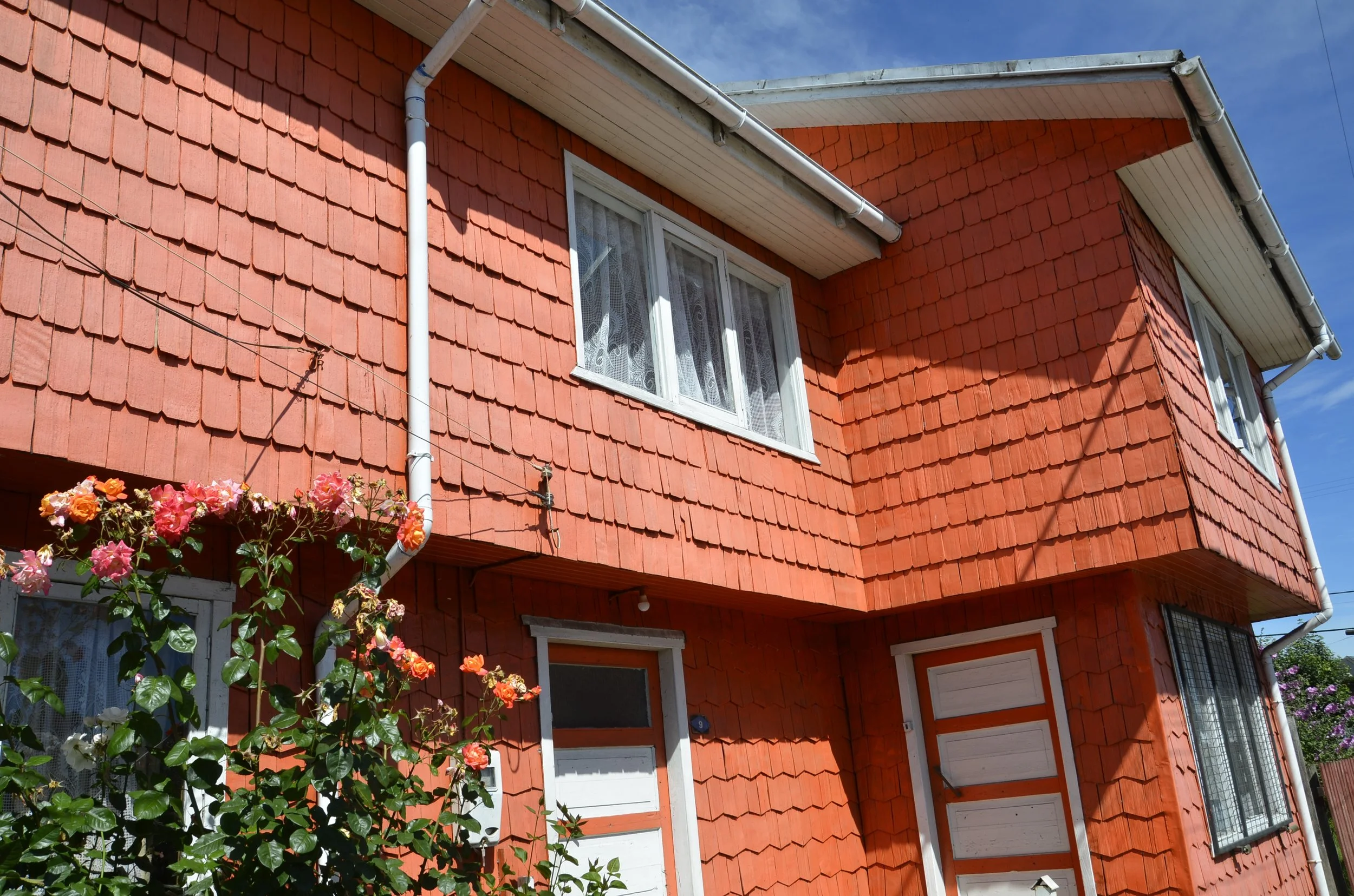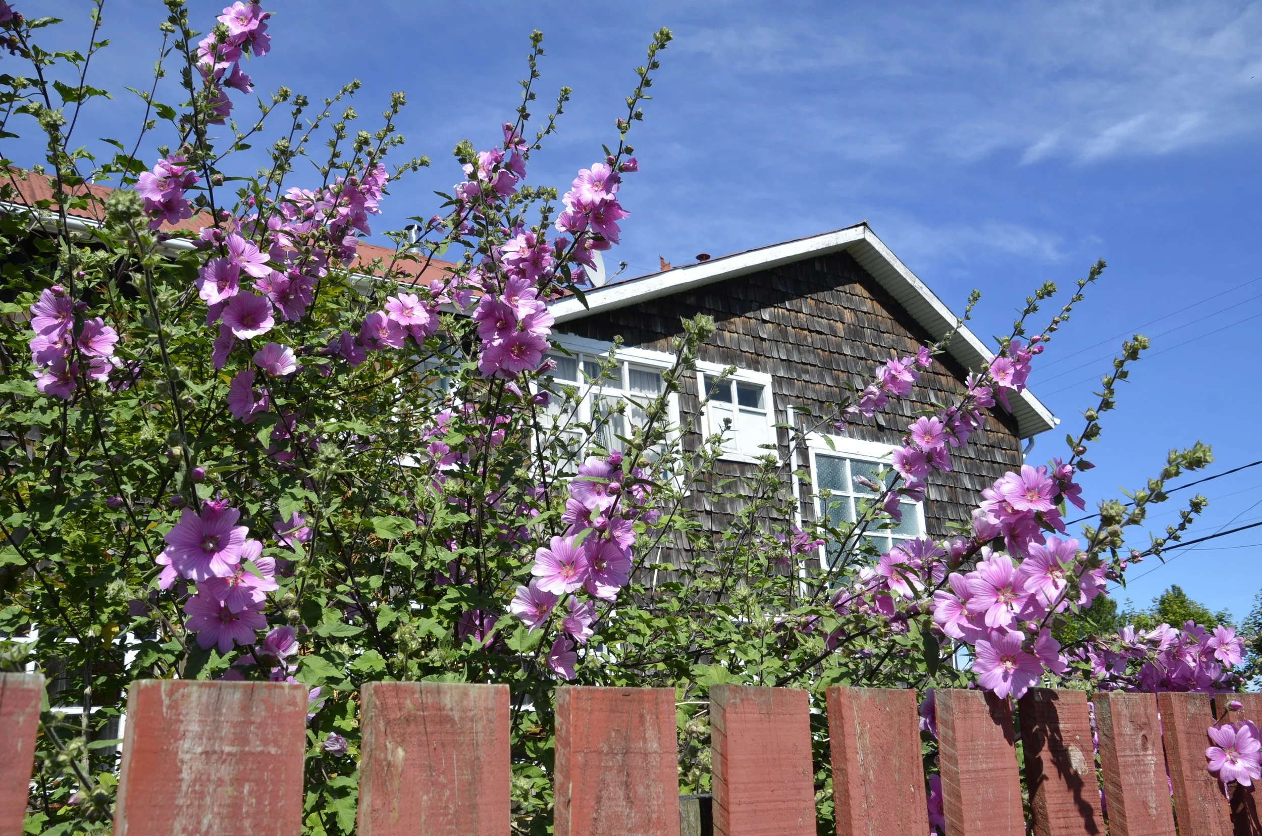 This next picture has several common characteristics of houses in this area… thin lace curtains, alerce siding painted a bright color and tall rose bushes -