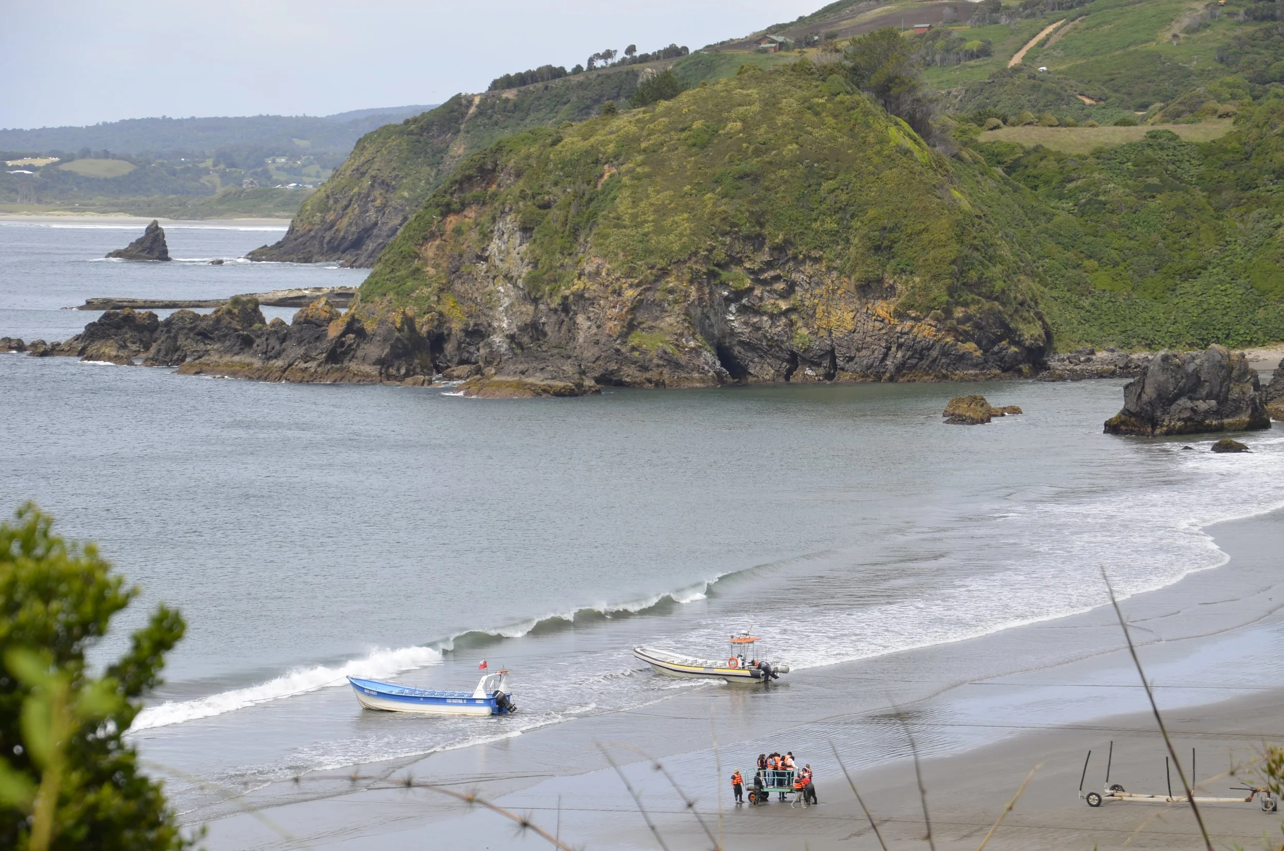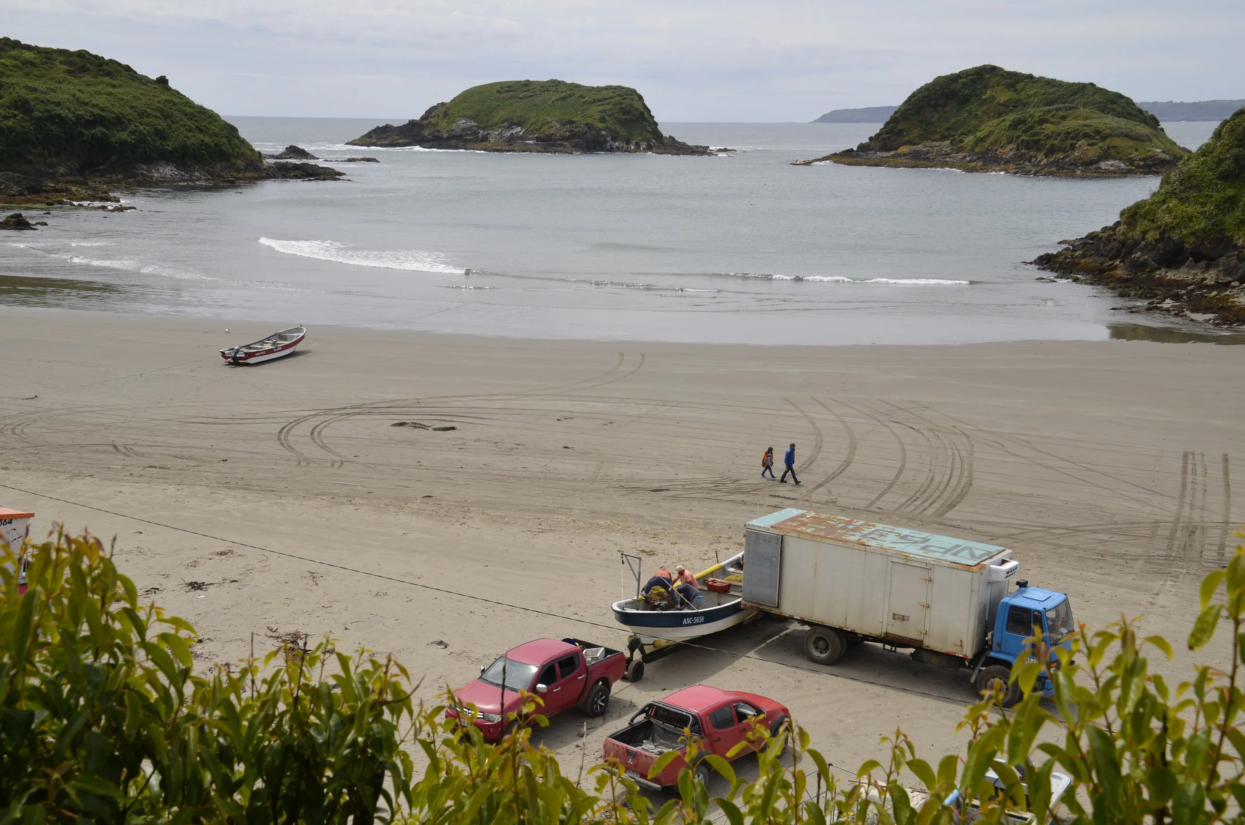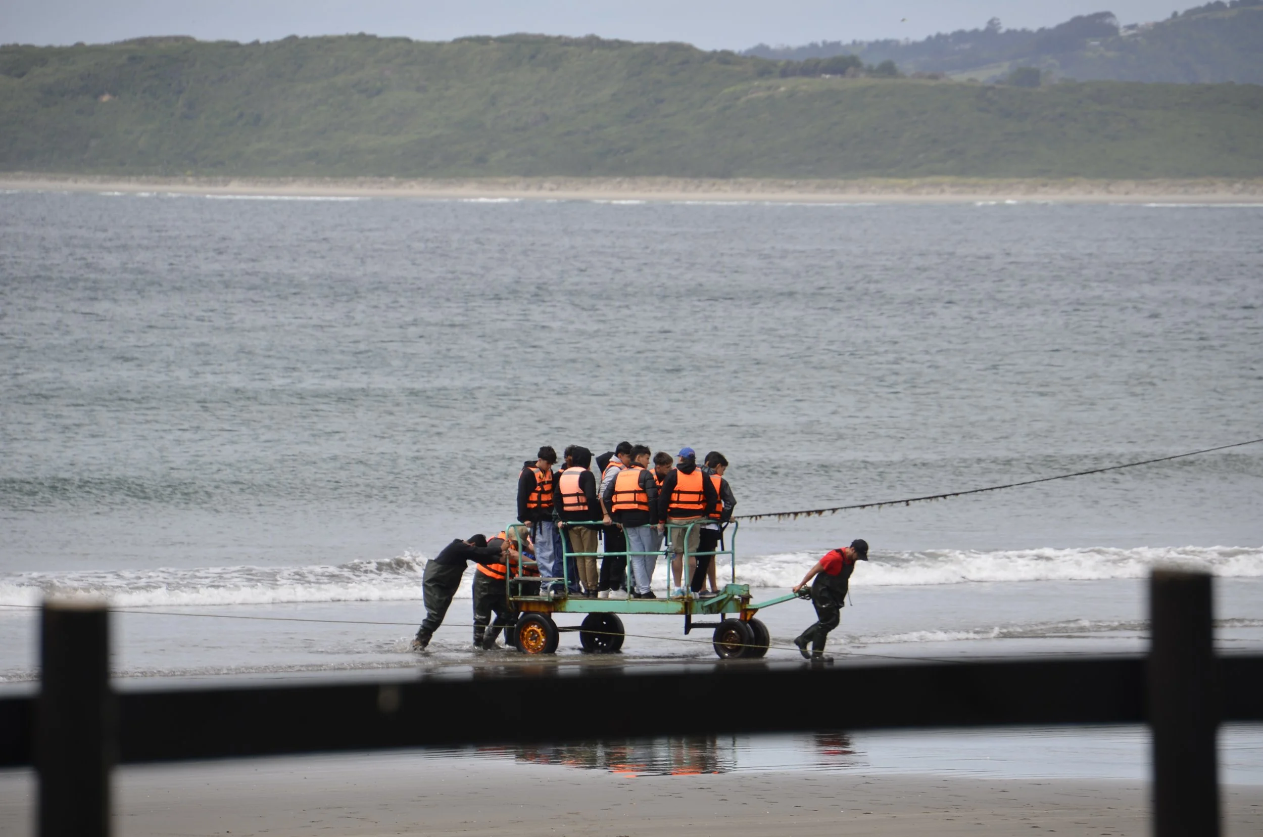 We then headed up to the NW corner of the main island of Chiloe to see penguins. The boat operators have a novel way of getting passengers out to the boats. The boats are left at the surf line…