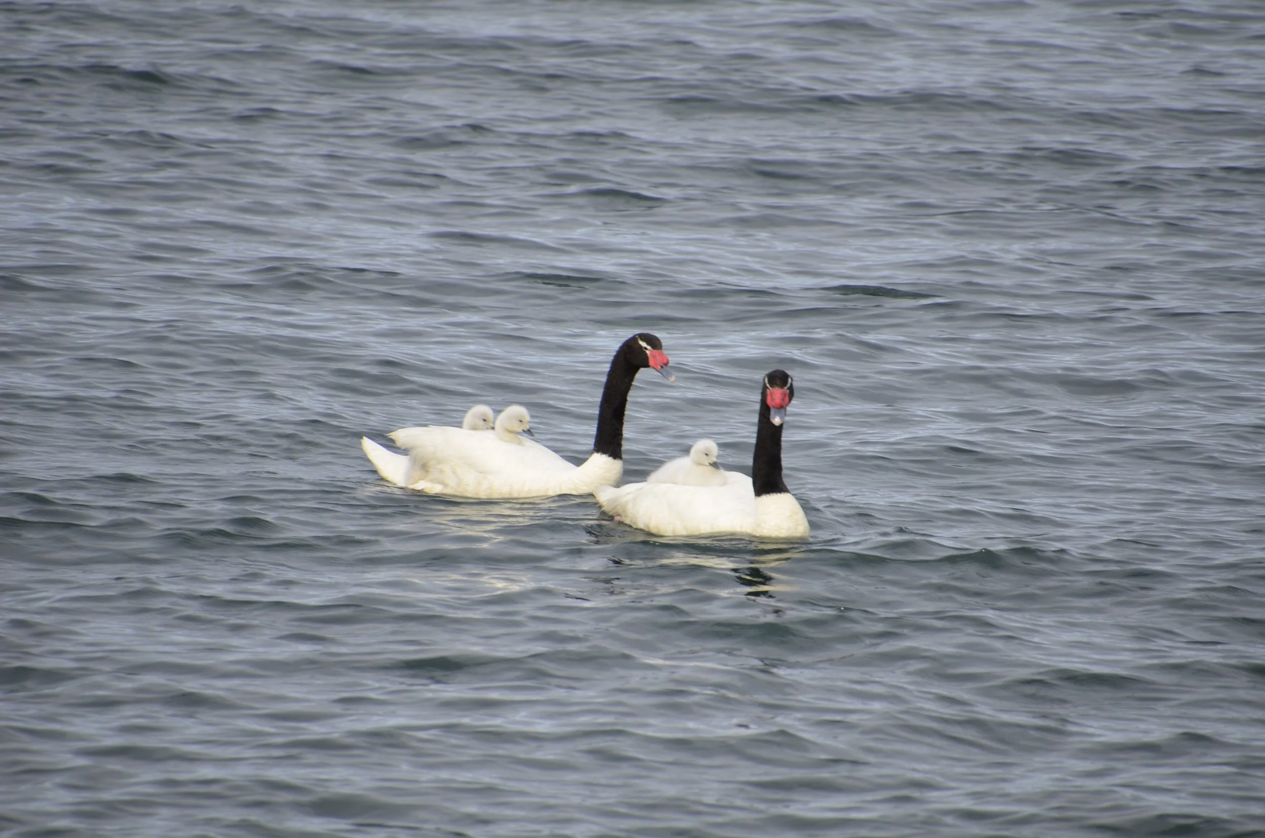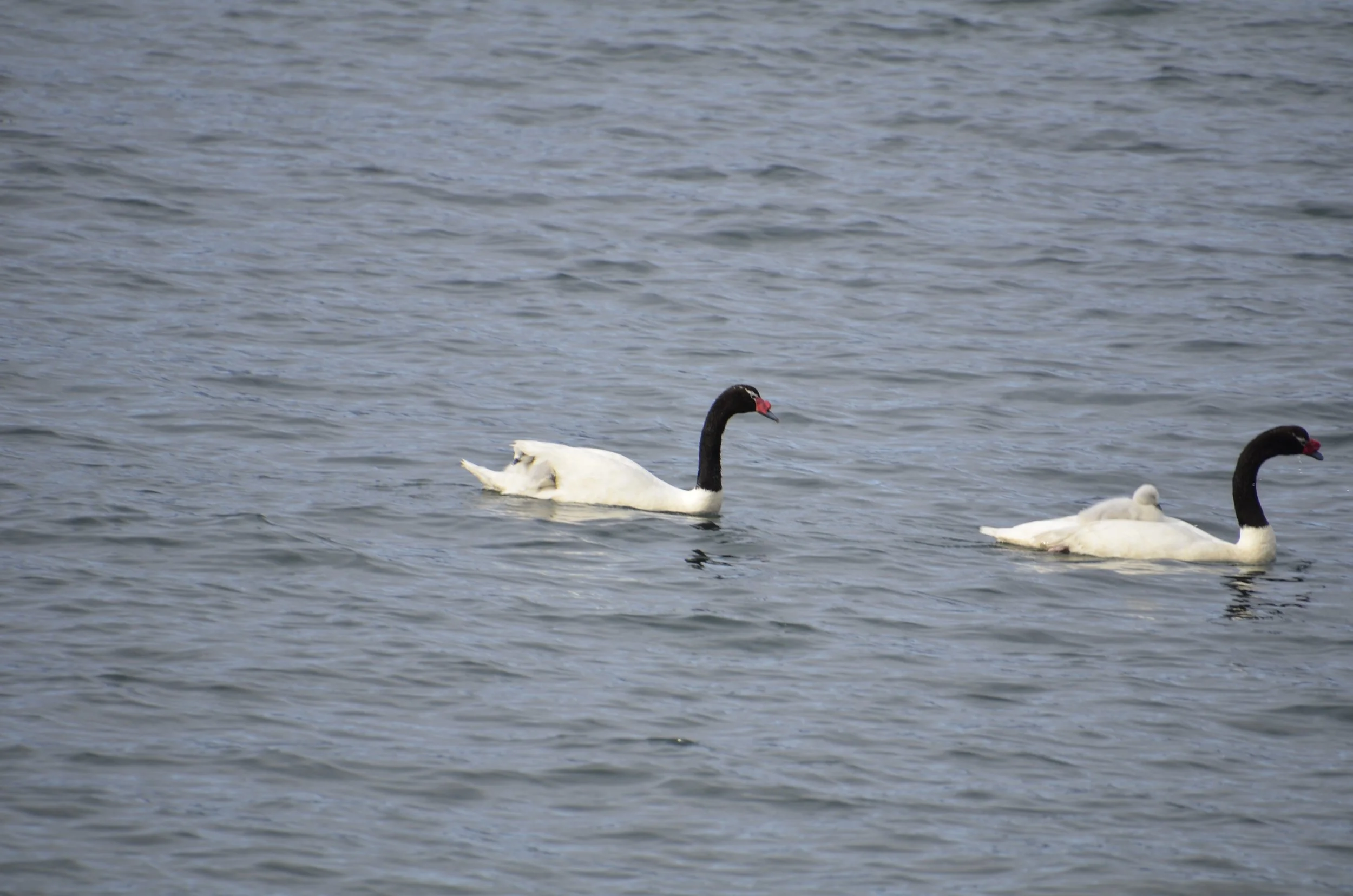 … and really grinned when the cygnet in the back climbed aboard its parent…