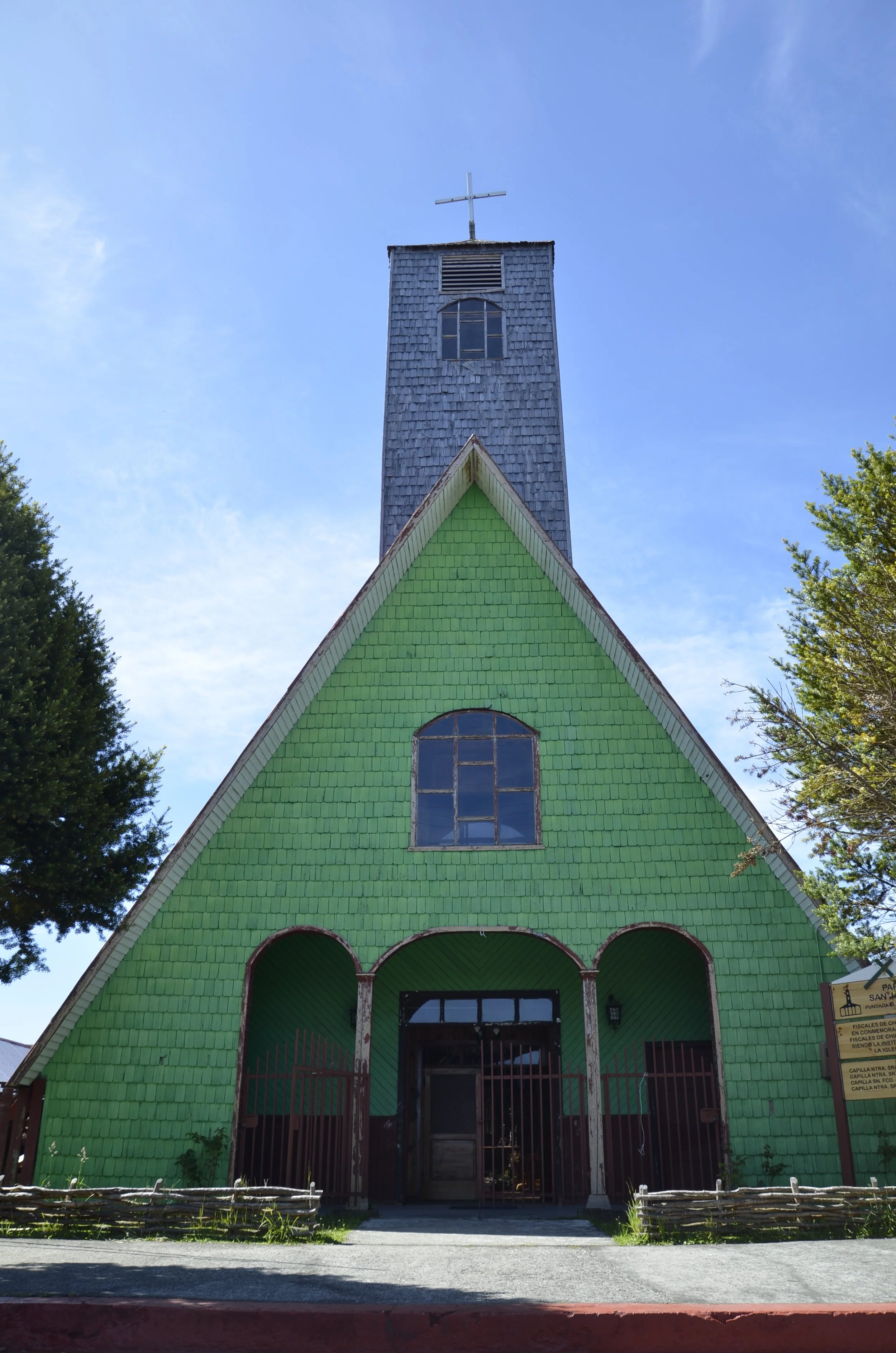 This is apparently the biggest church in the archipelago, located in Quinchao, but it looked pretty deserted to us. There are even vultures on the cross!