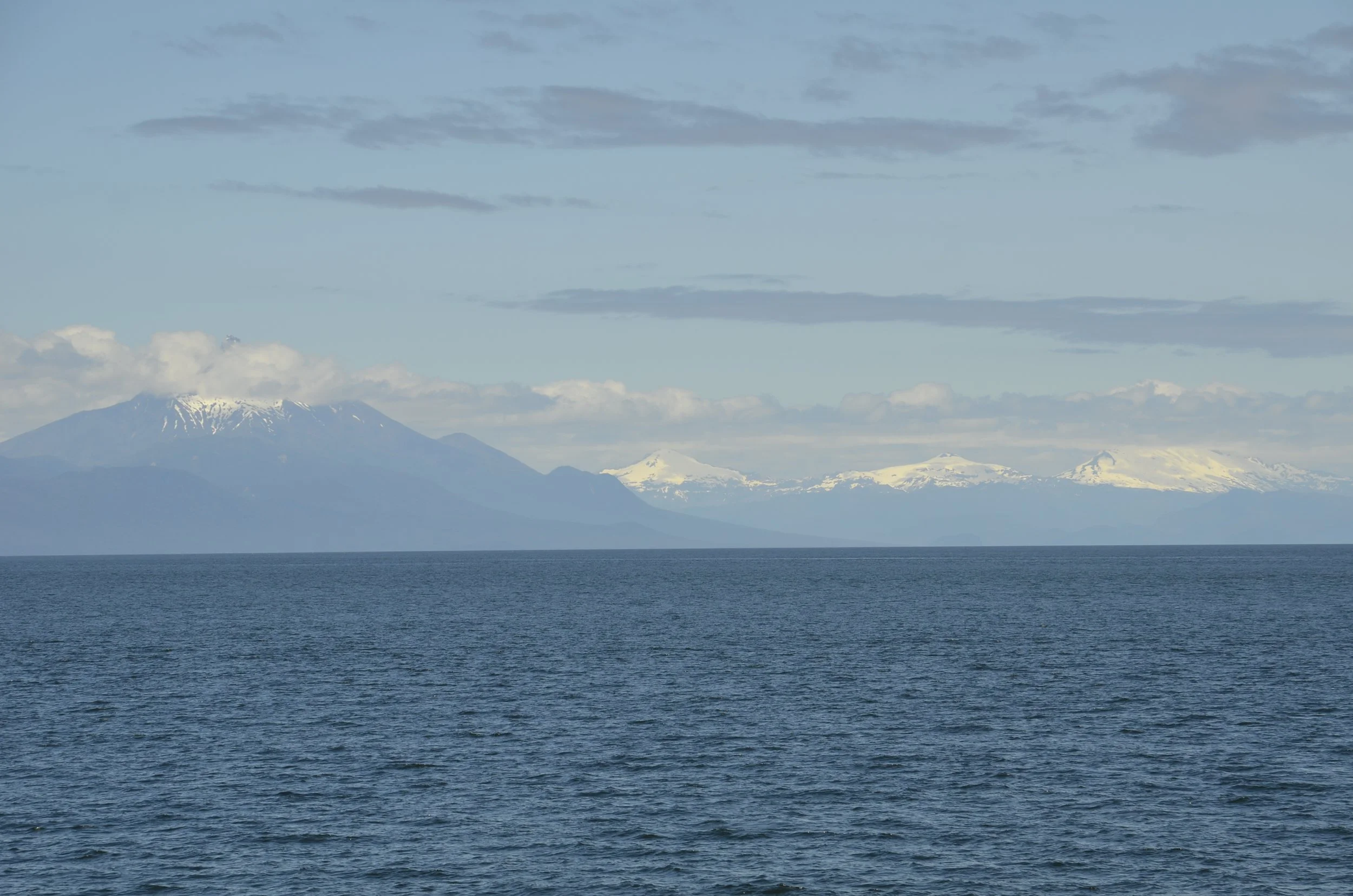 As we sailed away from the mainland, we could see snow-covered peaks almost the entire way -