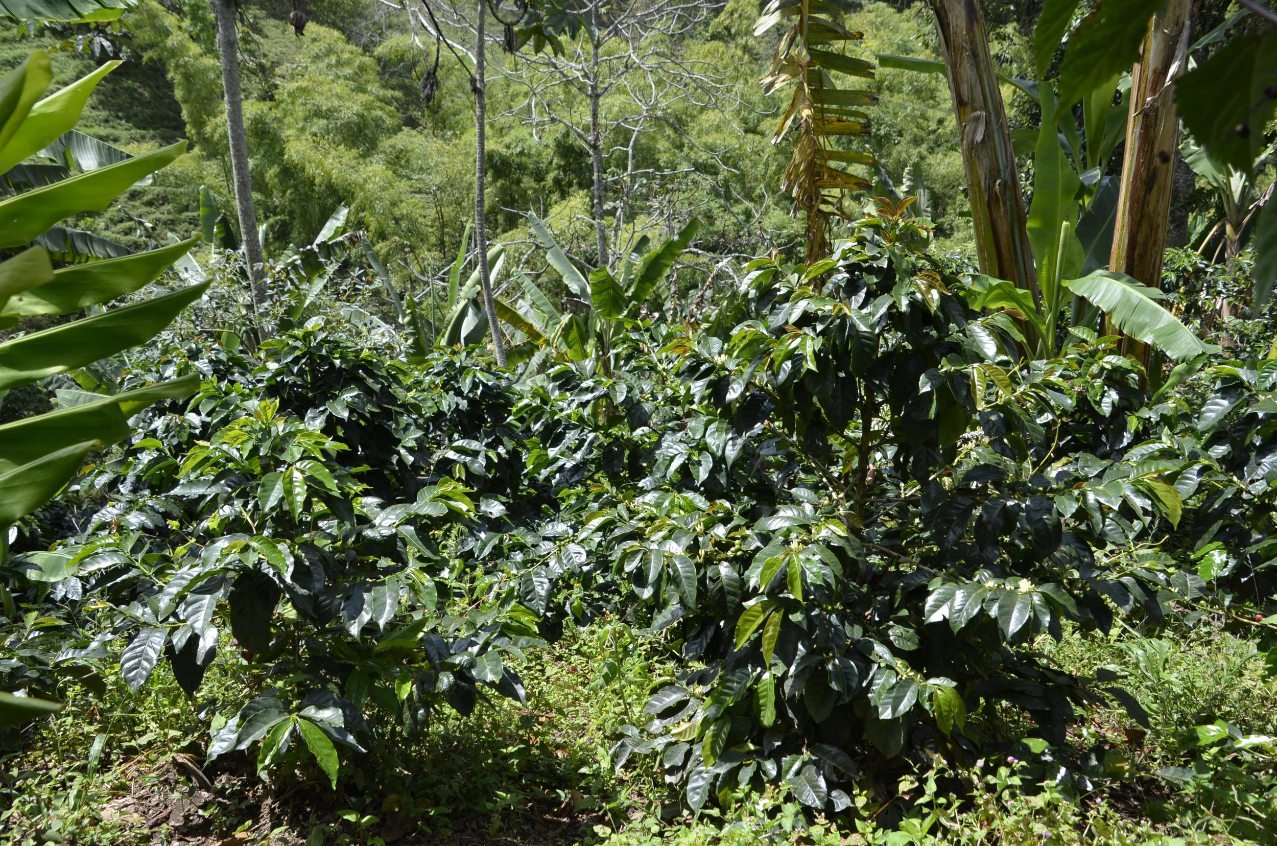 … but also banana trees. Other crops are grown alongside coffee for additional revenue, as well as to provide some shade for the coffee plants -