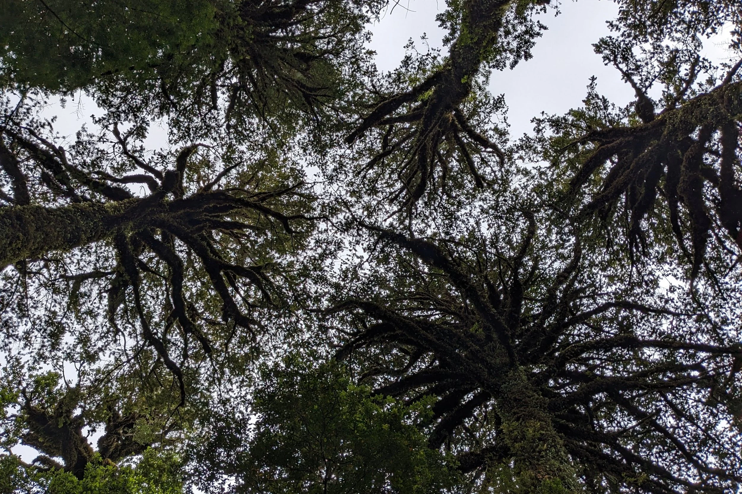 I just love the trunk covered with Spanish moss, as well as the design that the branches make in the sky -