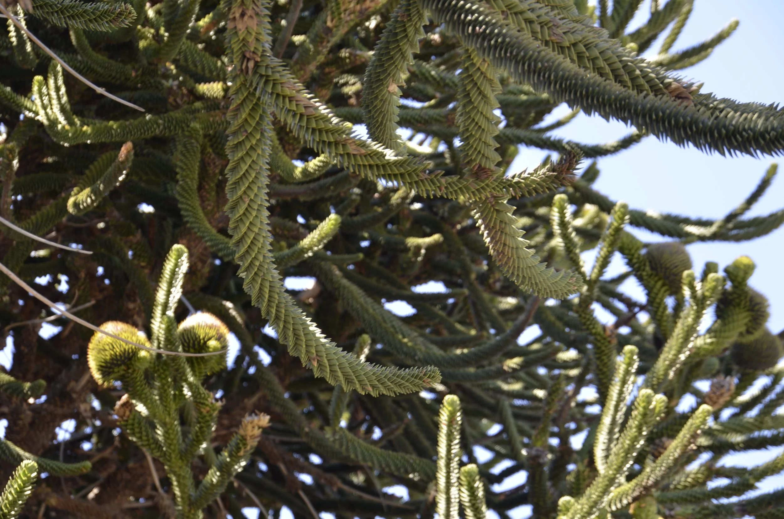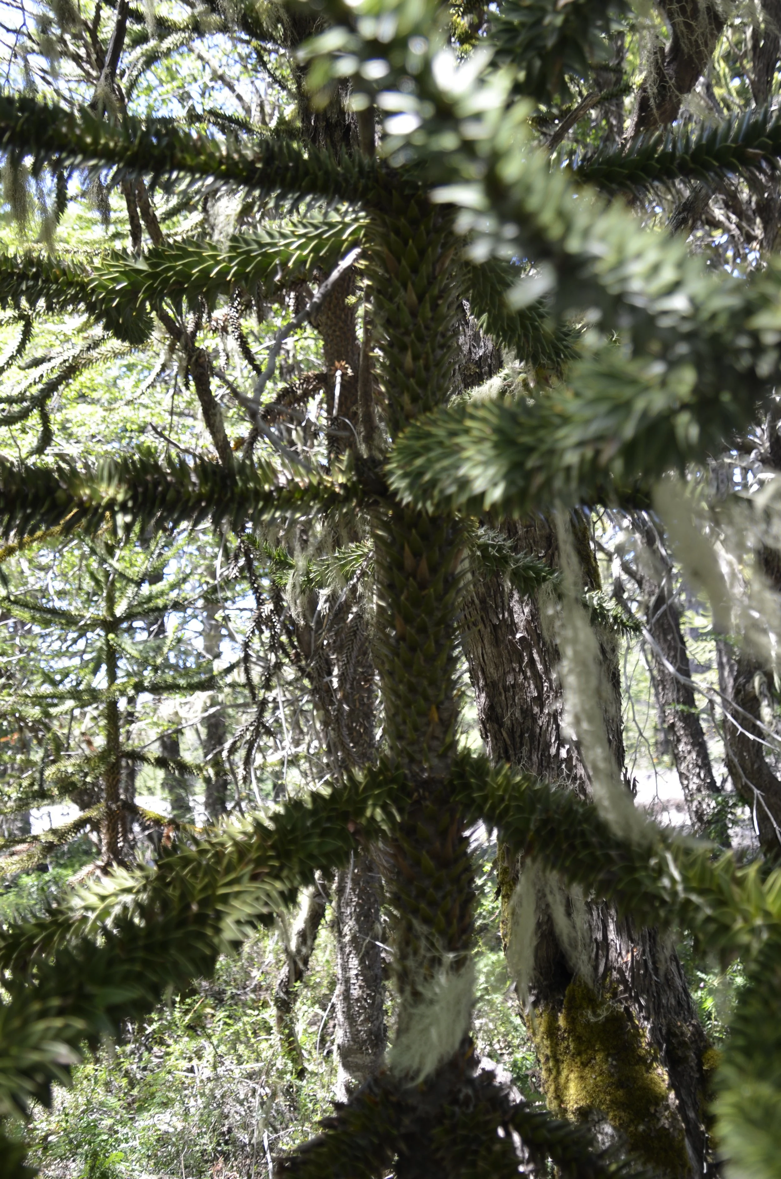… not that there are any monkeys in this area. Apparently the name was given to the tree when someone in England saw a specimen in someone’s garden in the mid-1800’s and posited that it would surely be hard for a monkey to climb it. The pine cones have been collected by the Mapuche (local indigenous people) for millennia, as each cone is loaded with pine nuts. These trees only grow in a small area of the Andes in Chile and Argentina. They are so protected that roads are built around them -