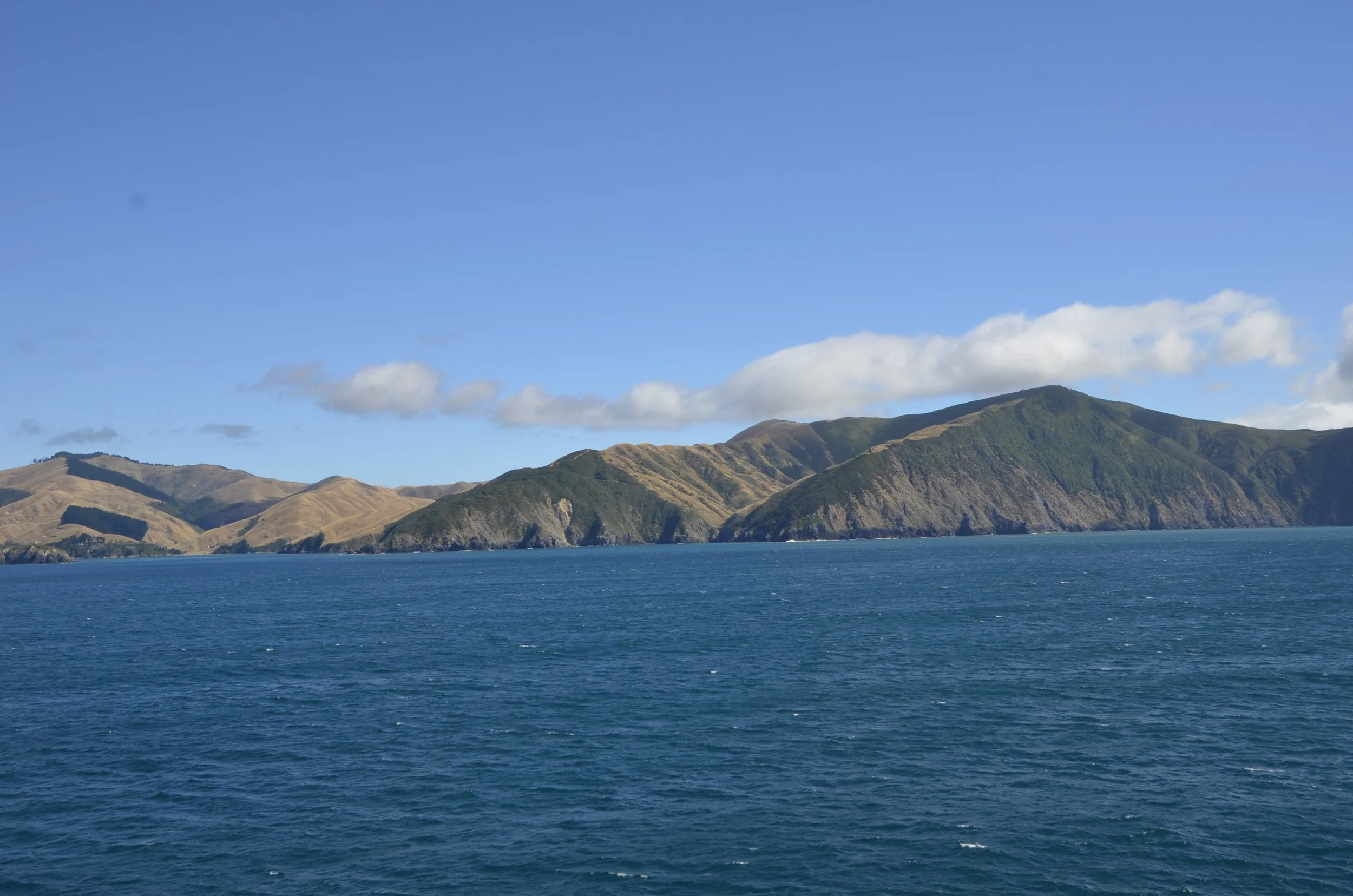 After tasting our fill of Marlborough wines, we moved on - south down the east coast. Our destination was Kaikoura, to join a whale watching cruise (looking for sperm whales). This was the extent of what we could see as we approached town:
