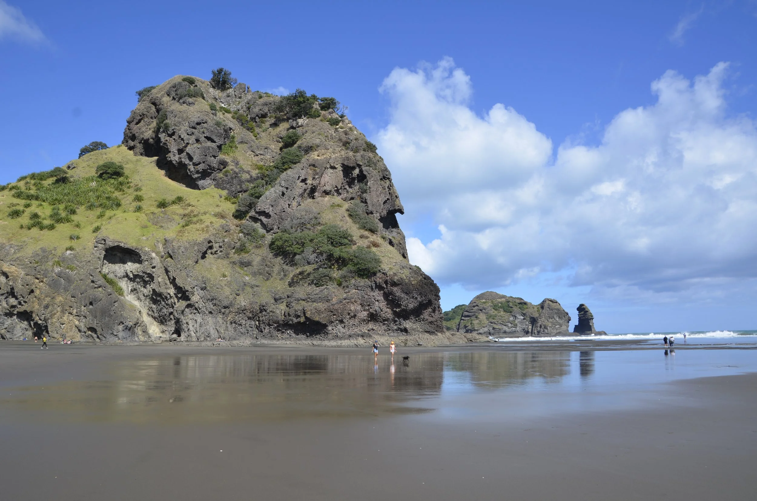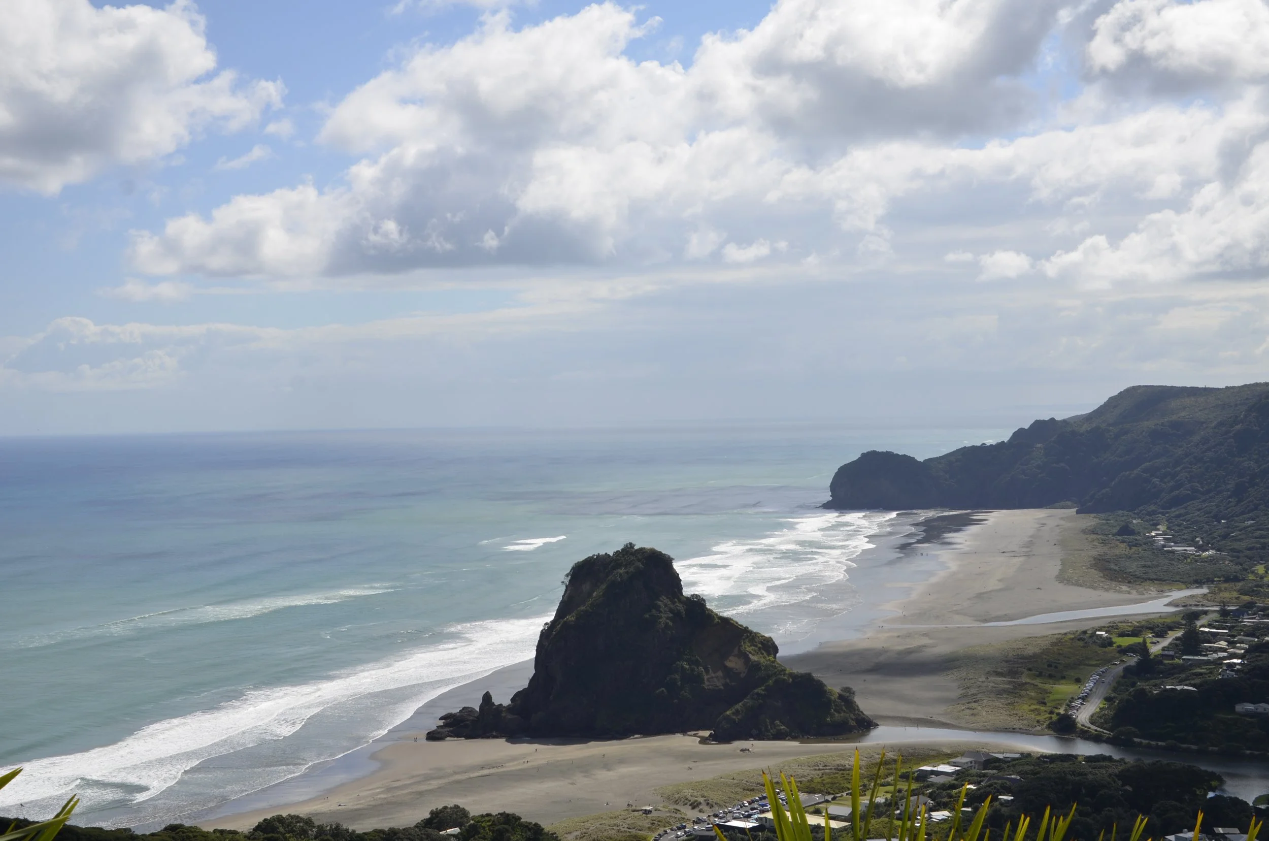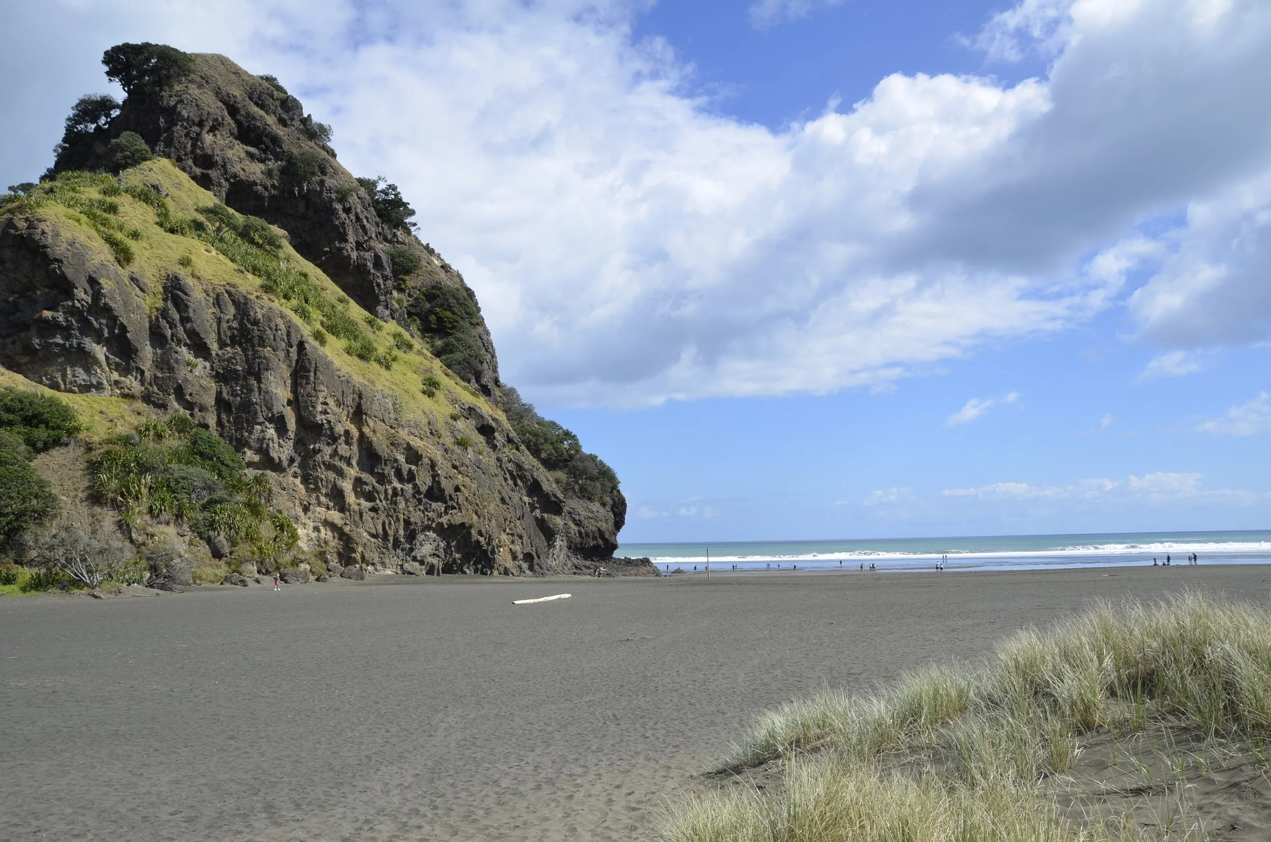 I had read about the beach at the nearby town of Piha, so on a whim, I asked Steve to stop and let us check it out. Check out the tiny specks of people on the sand -