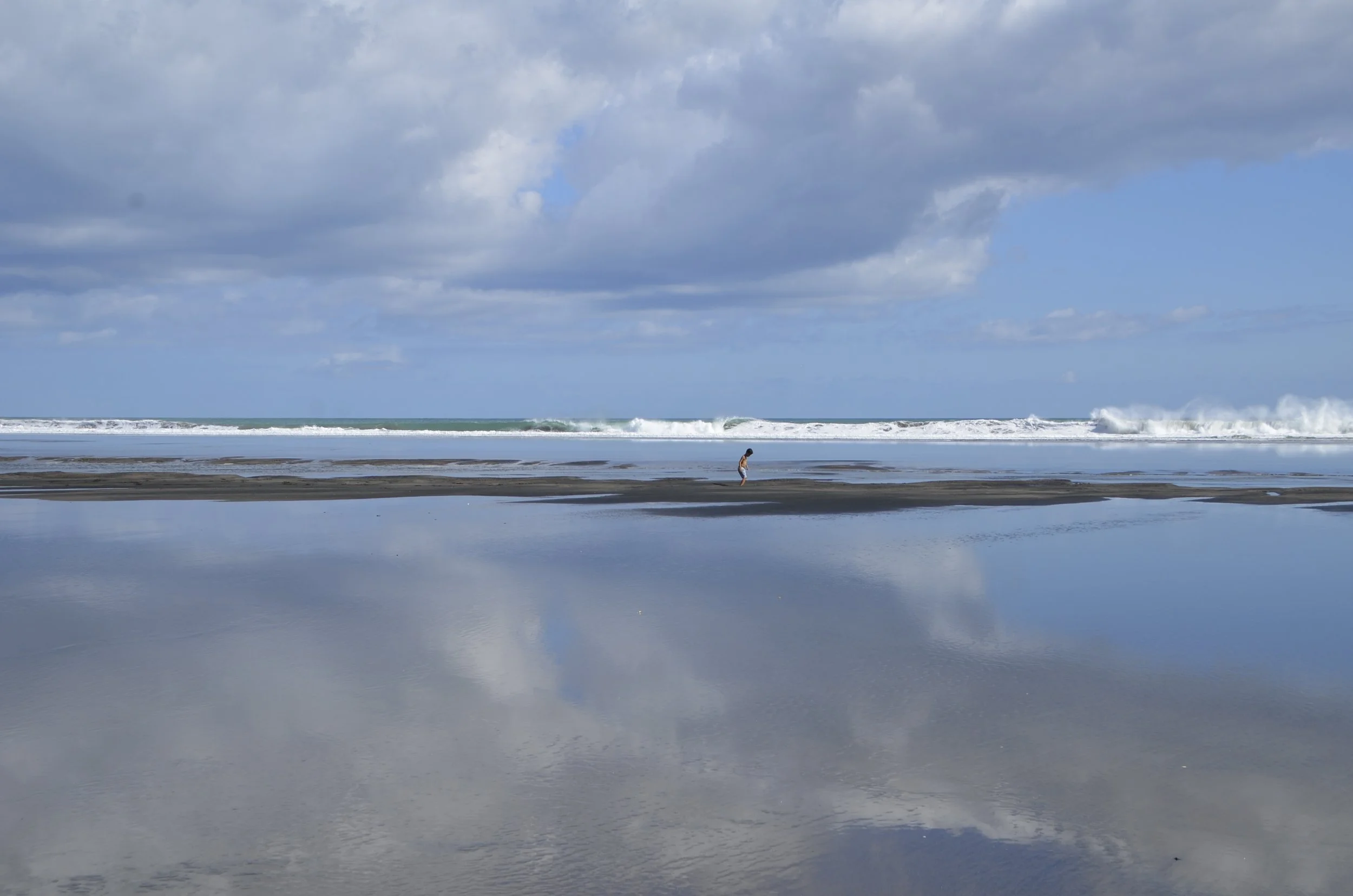 The parking lot for the falls also served the nearby beach of the same name, so we walked out to it, along an estuary…