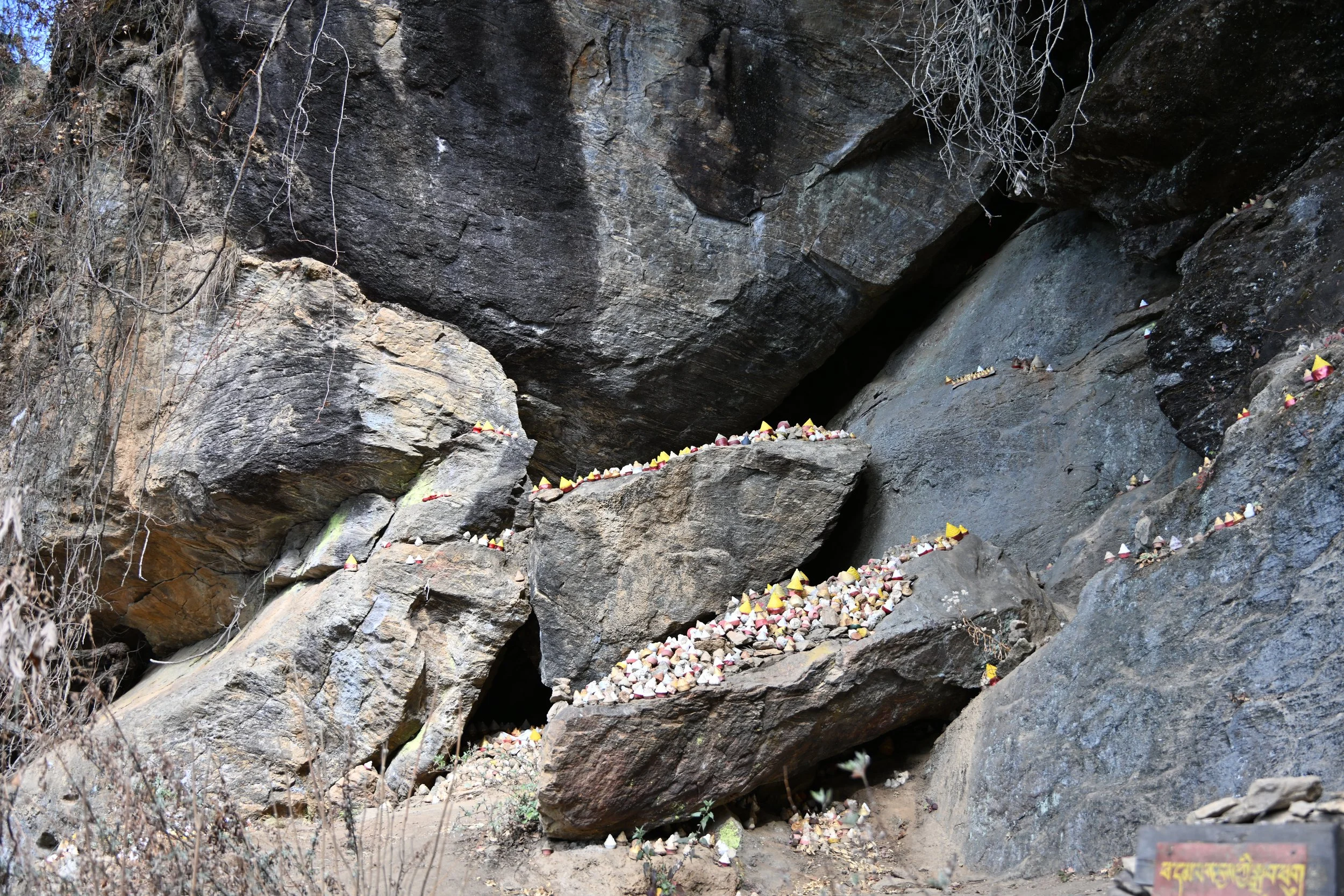 … where we were required to put all cameras and phones in lockers. Steve noted the altitude there was 10,128 ft., but all references to the Tiger’s Nest say that it’s at 10,240 ft. We definitely climbed more stairs, visiting the nine temples contained within the complex. Because you are not allowed to photograph inside temples, the only pictures and stories online are of the exterior. It took us an hour to see the temples and hear all the relevant stories.