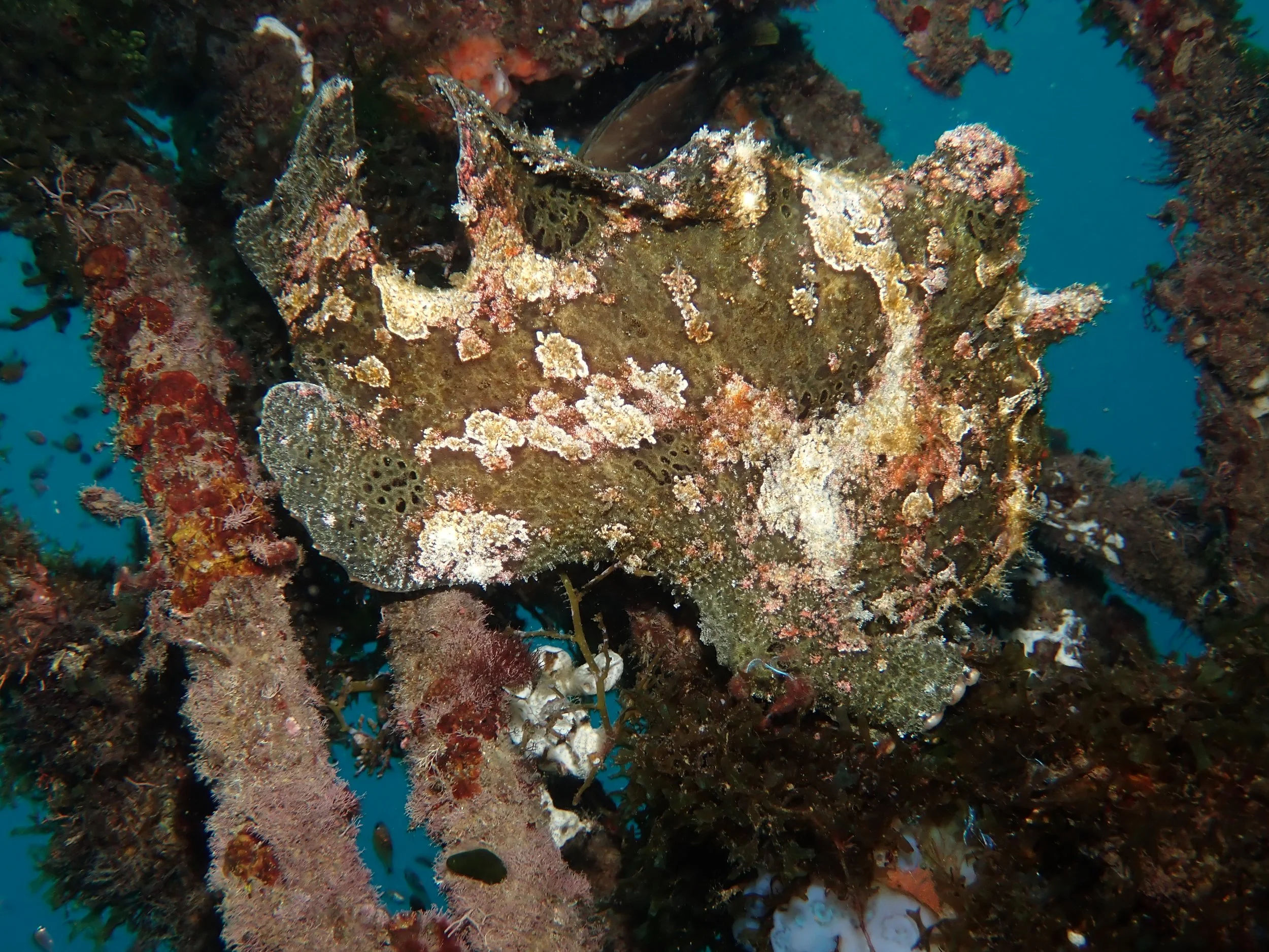 a Giant Frogfish (hopefully you can see beyond his camouflage to note its outline)