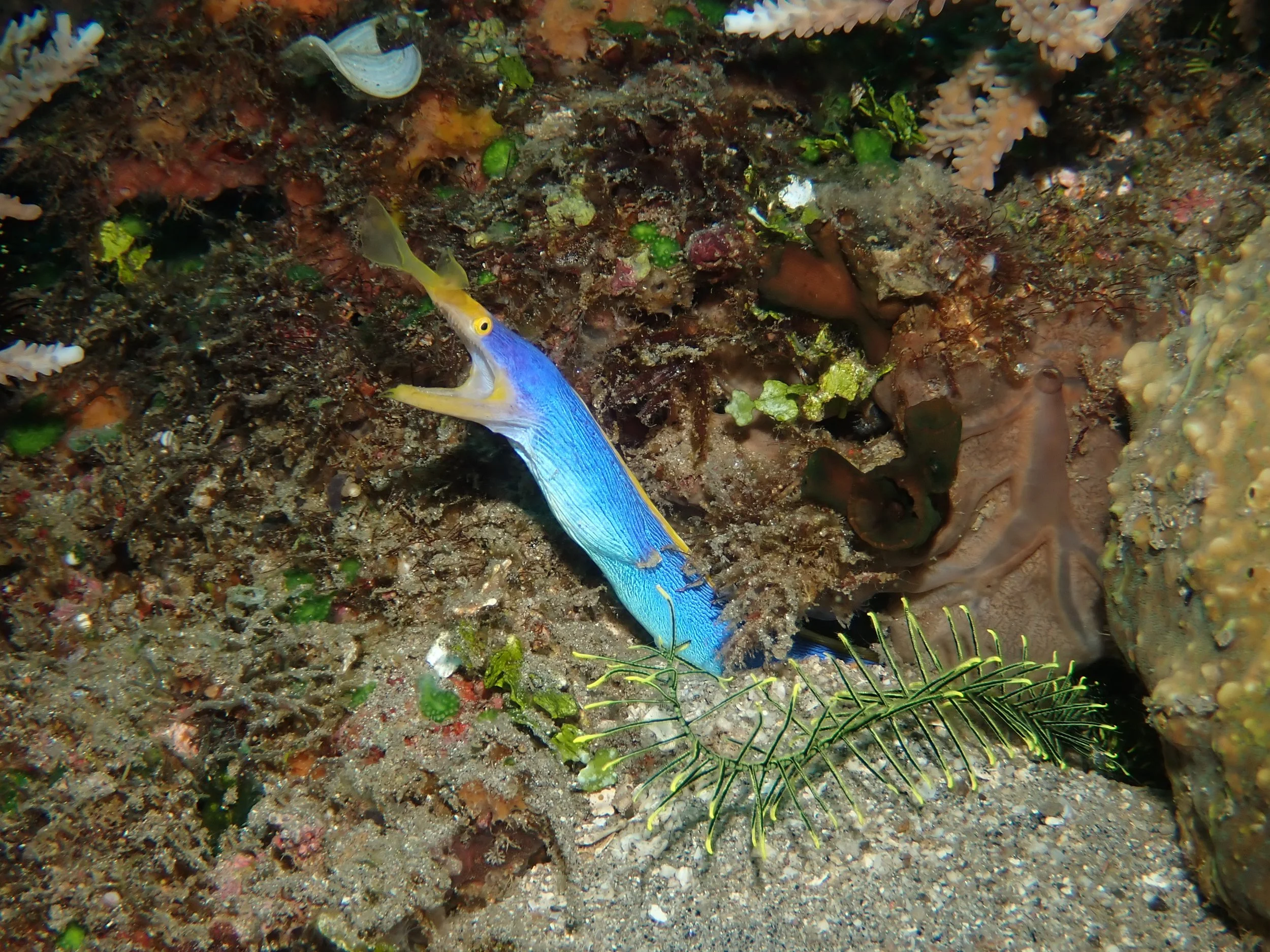 I’d be remiss if I didn’t share some of the most colorful denizens we encountered, including this Ribbon Eel…