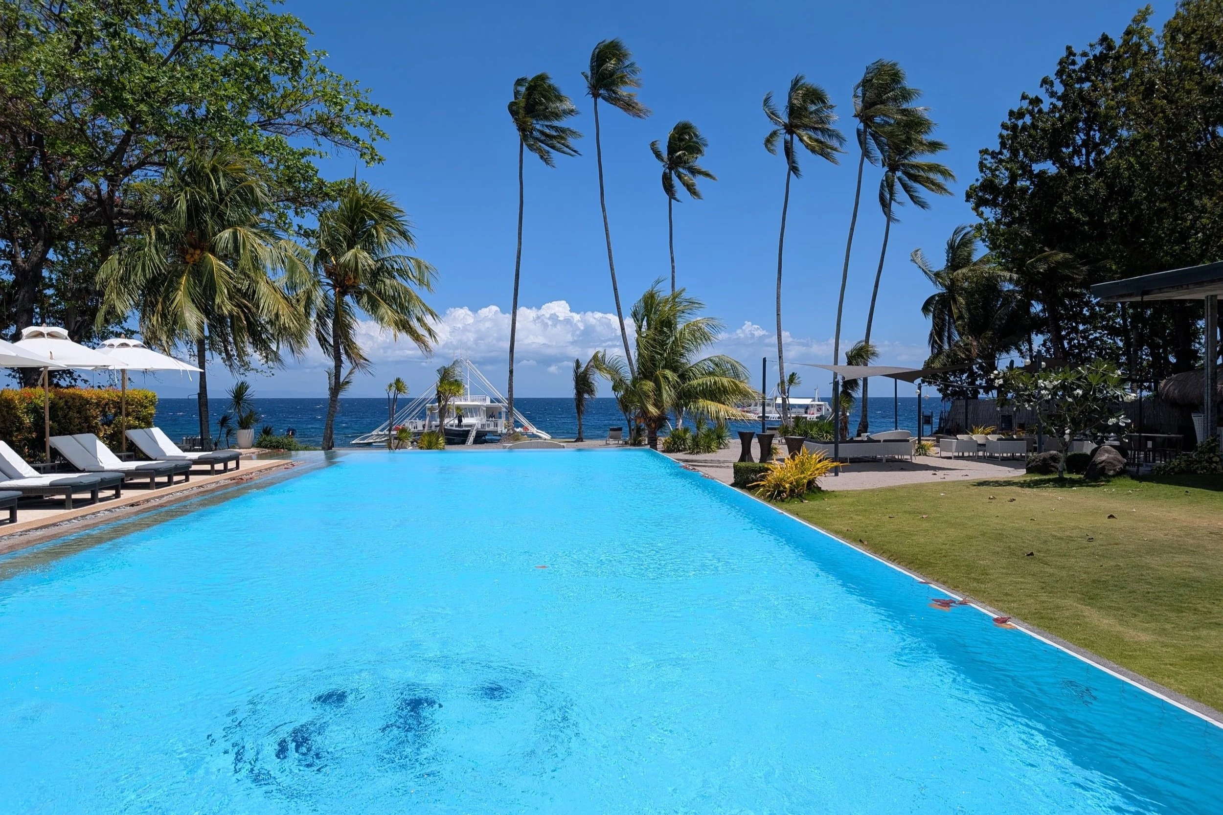 We don’t normally talk about our accommodations on these trips (other than the extreme low-end like in Nepal), but our last resort of the trip, south of Dumaguete at Dauin, was just amazing. The diving was as spectacular as the views from the pool -